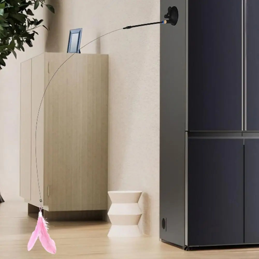 4.Stress-free Installation: Attach this cat wand toy and let your furry friend enjoy endless playtime. It's designed with a strong suction cup that firmly adheres to smooth floors, walls, windows, and more, ensuring it stays in place and won't easily over.