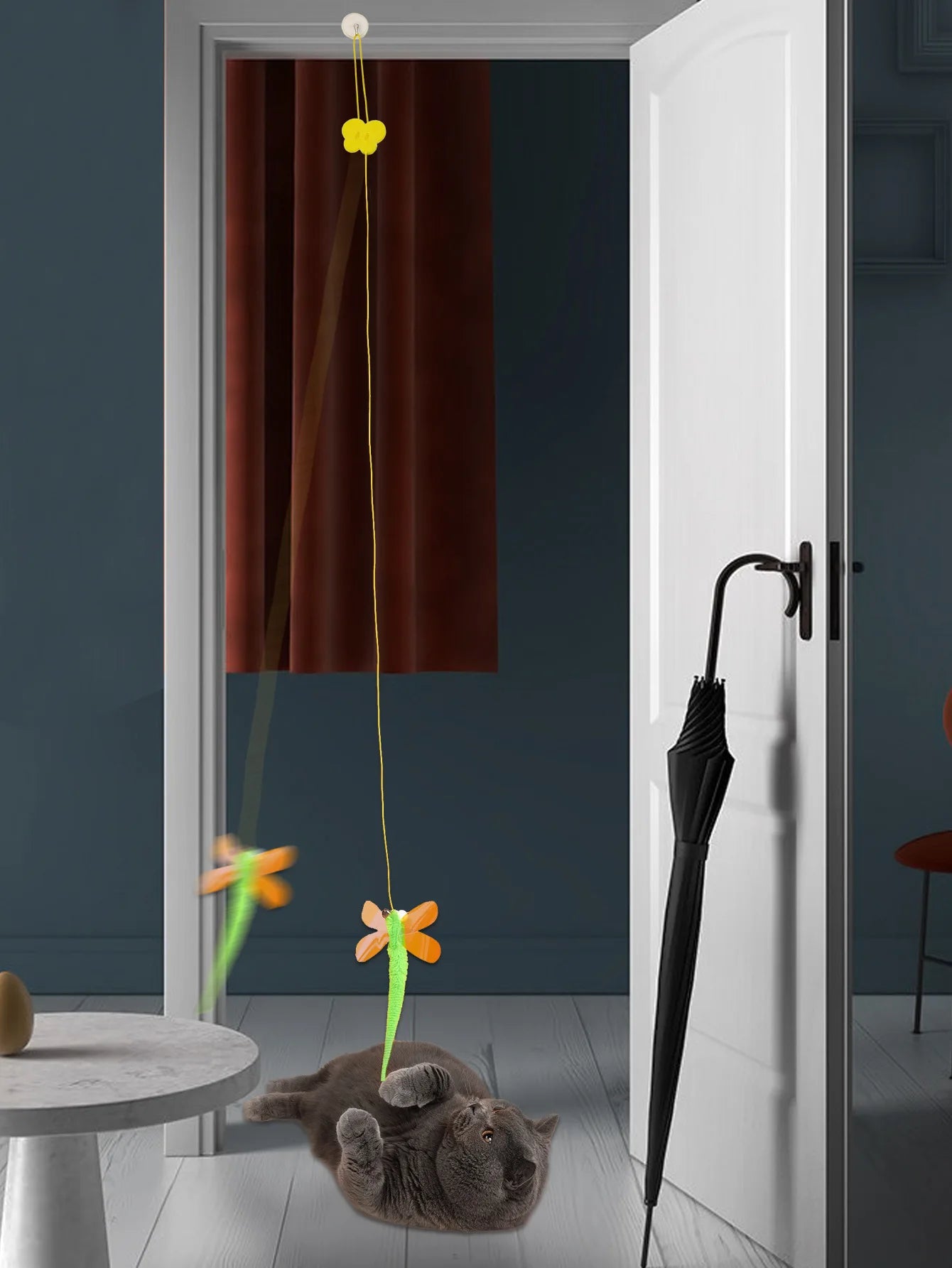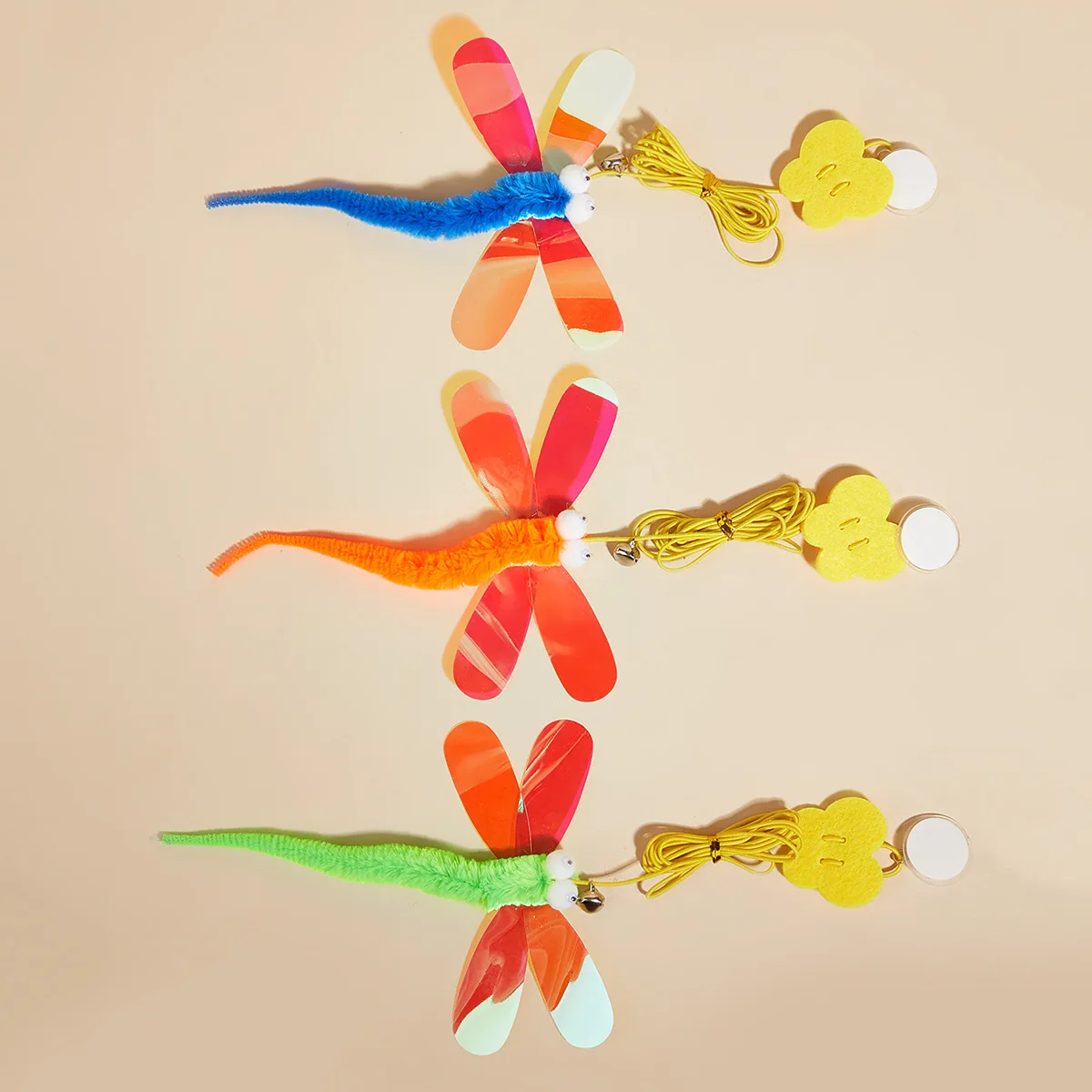 Cat Toy Cat Teaser Stick Three Color Dragonfly Hanging With Adjustable And Adjustable Self Cat Teaser Toy Swing Cat Teaser Stick