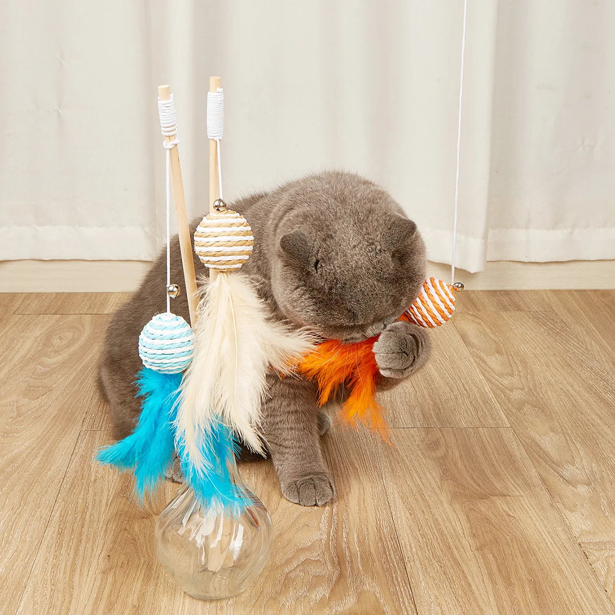 Cat Toy Cat Teaser Sticks Paper Rope Ball Tease Cat Stick Cat Interactive Toy Pet Toy Replace Head Cat Supplies Tease Cat Ball.
