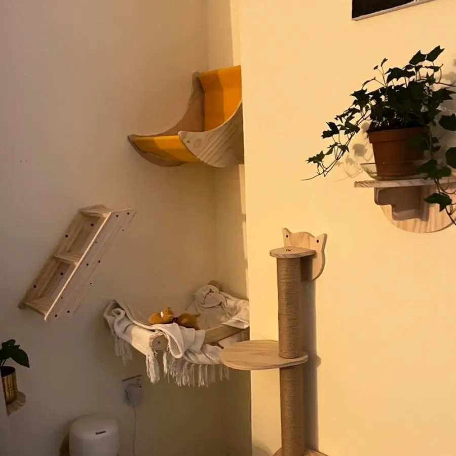 * Toys - The owner can put the cat's favorite toys on the cat wall, and the cat will climb to play with the toy.