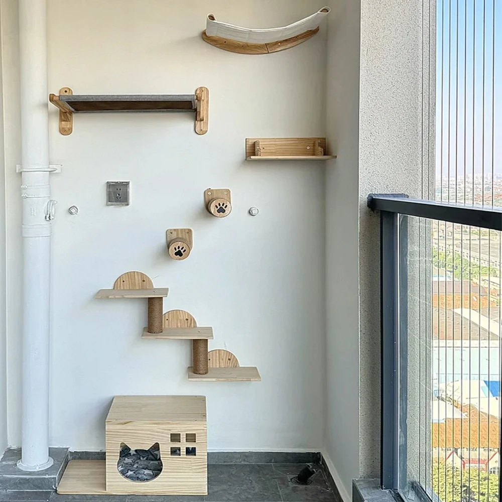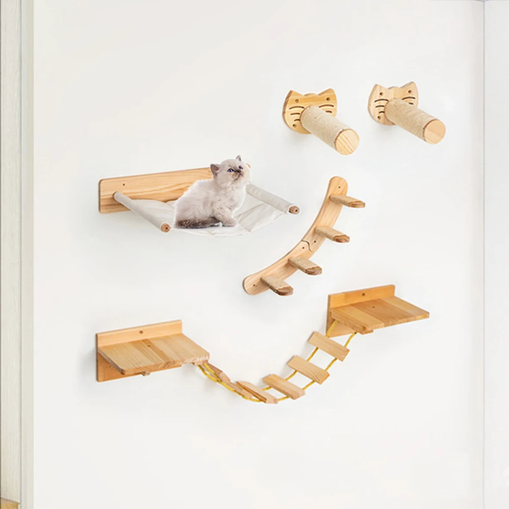 Cat Wall Mounted Climbing Shelves Cat Hammocks Durable Scratching Post For Cats & Kitten Cat Bowl Cat Cute Steps Easy-to-clean