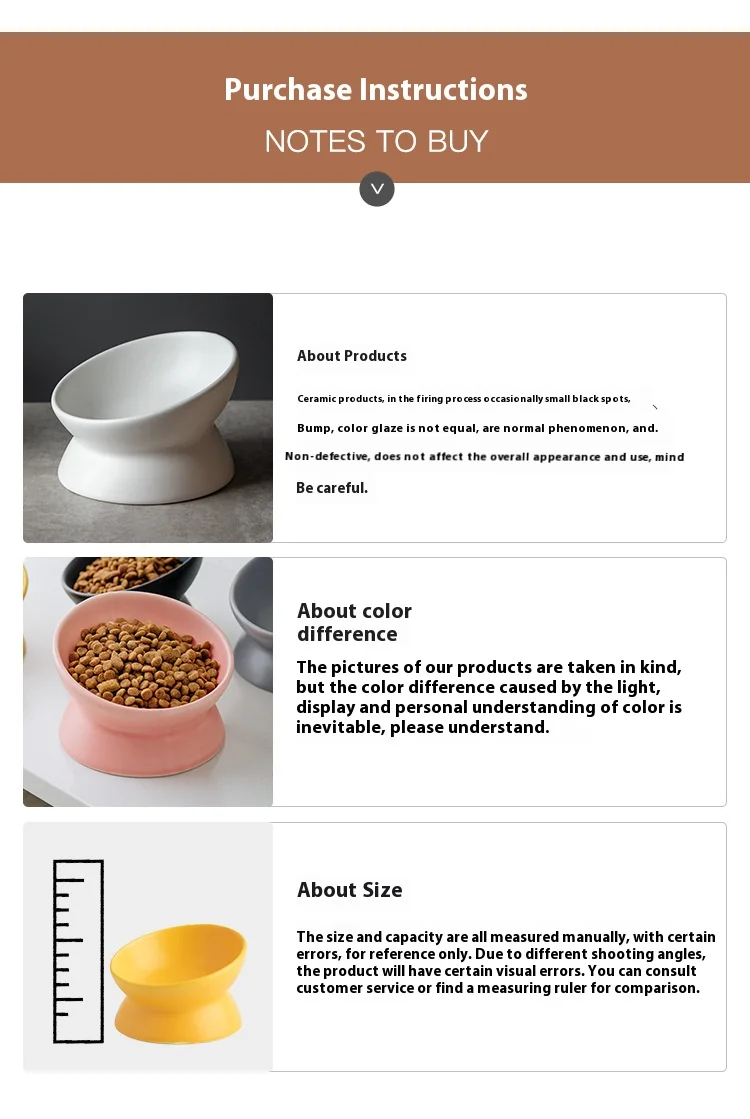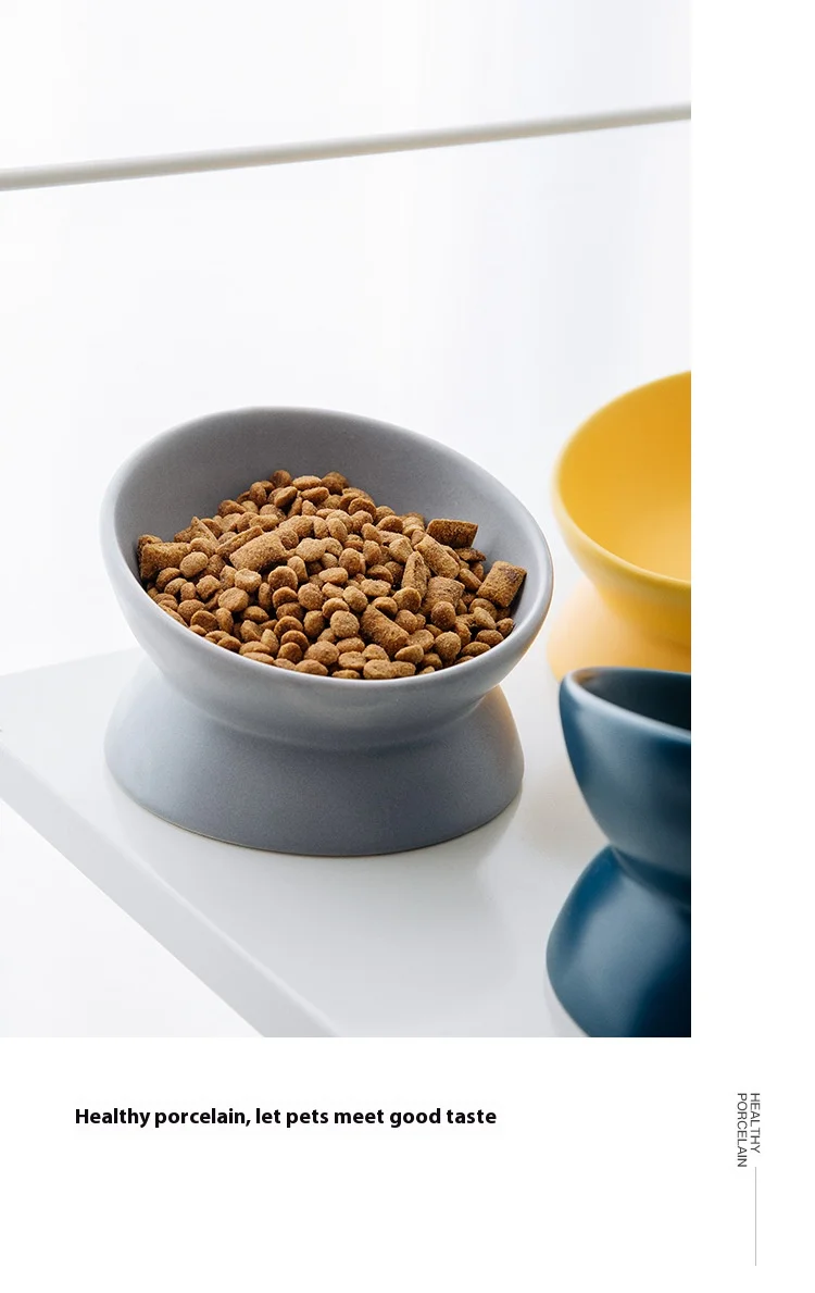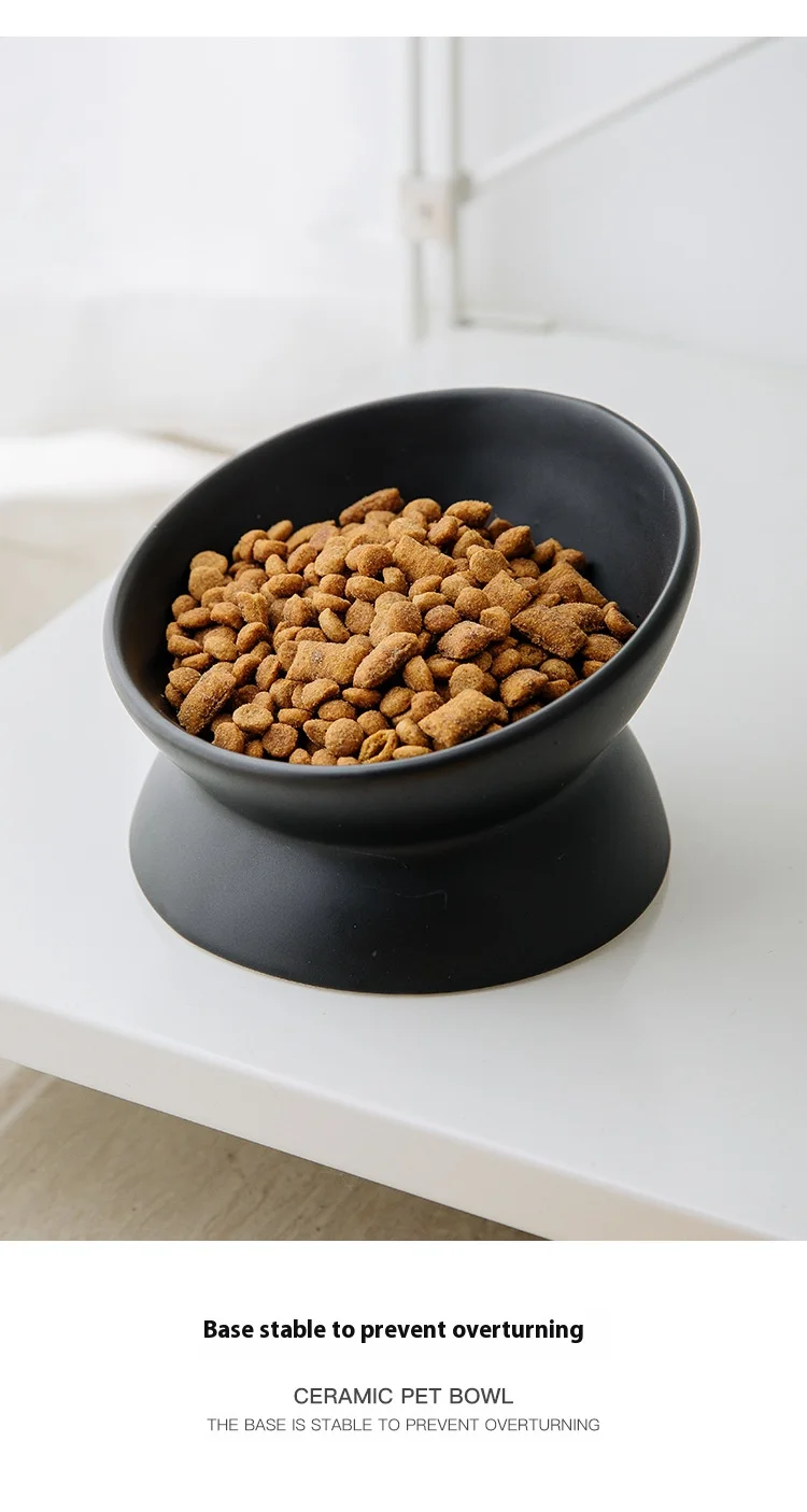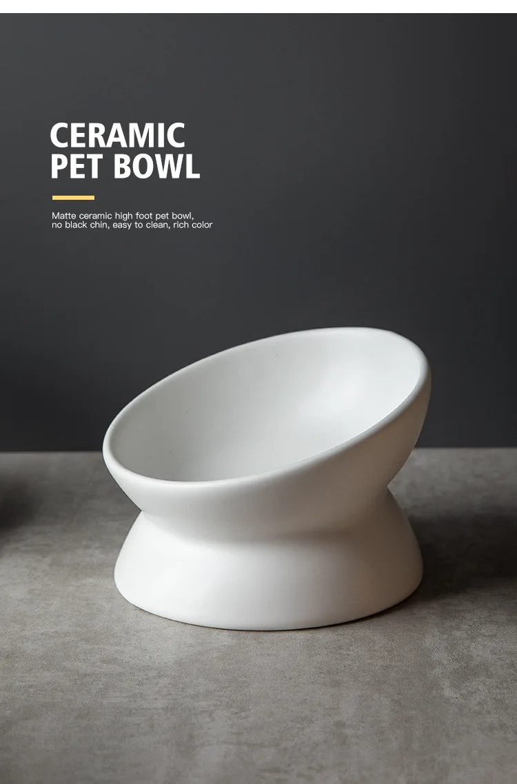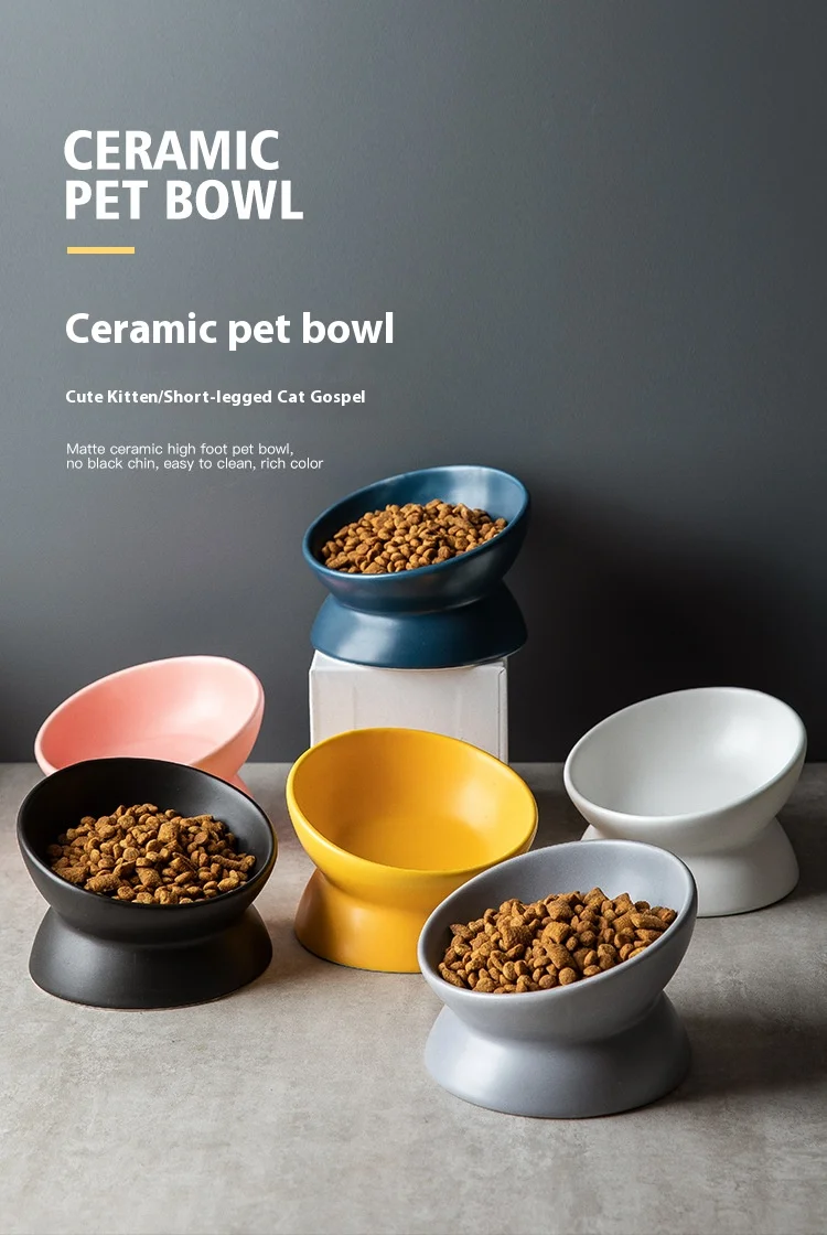 Ceramic bowl, cat bowl, dog bowl, pet bowl, slanted mouth, high foot protection, cervical spine, dog, cat, food bowl, pet suppli
