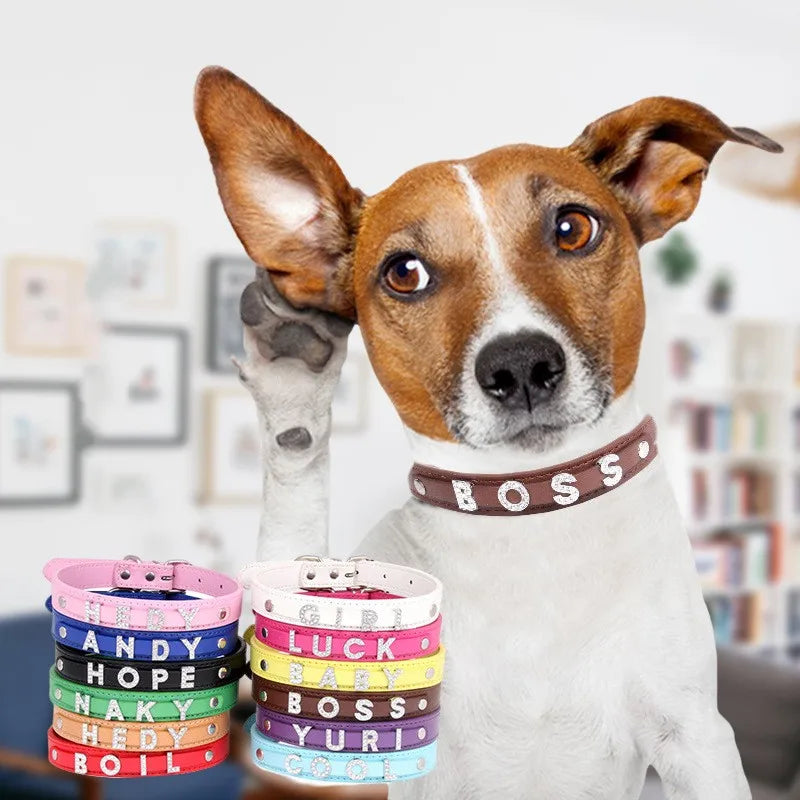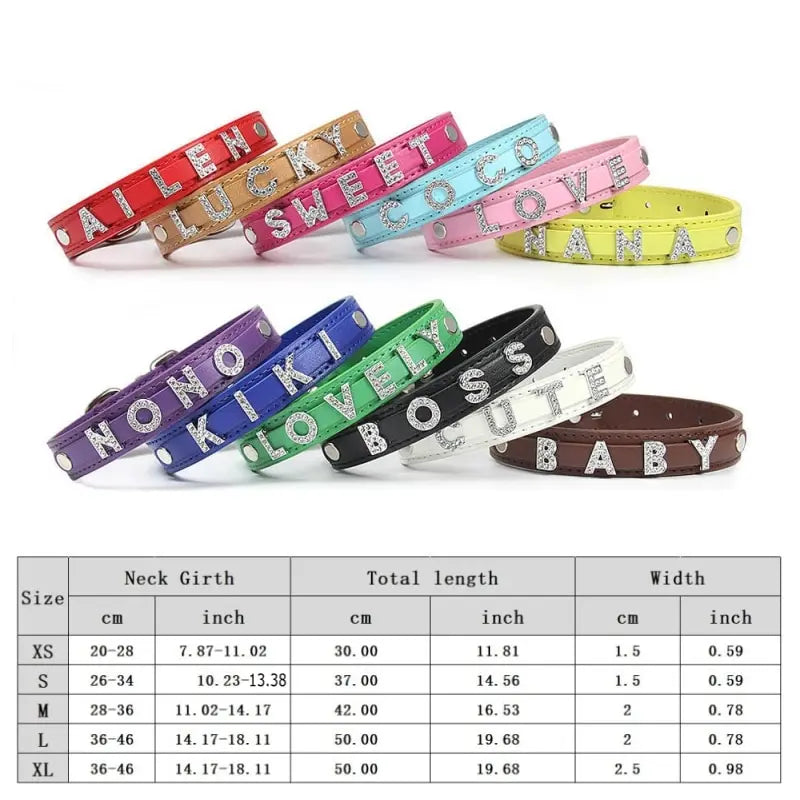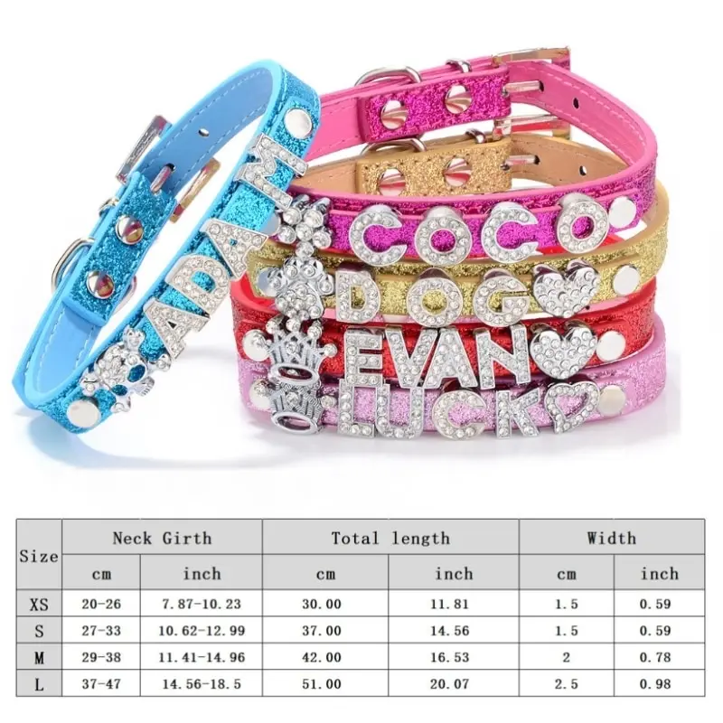 Package:1 pcs Pet Collar and FREE 10mm Rhinestone Letters up to 5 Letters + 1 Charm or 6 Letters!