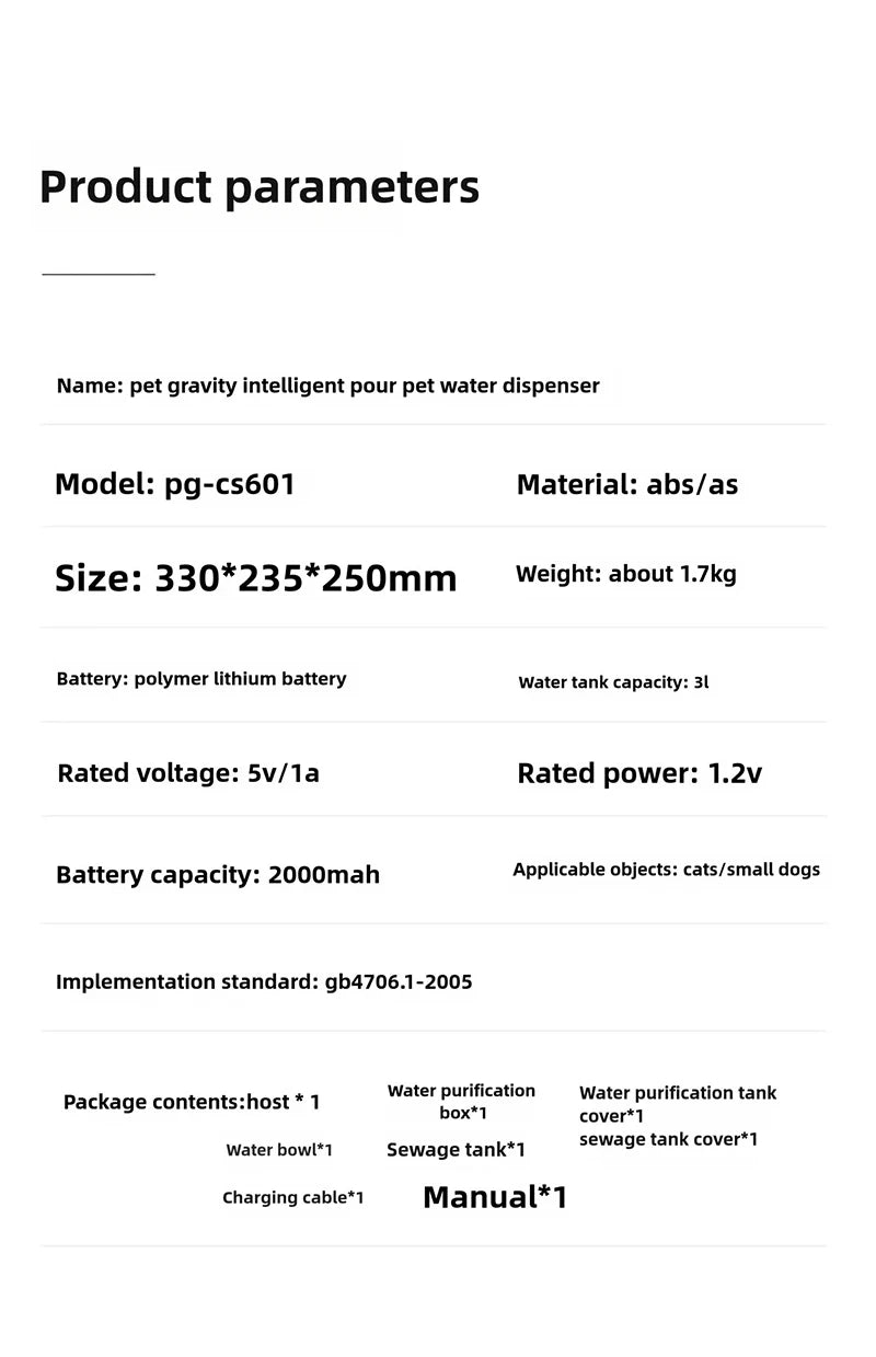 Rated voltage: 5V/1A Dispenser cat water fountain
