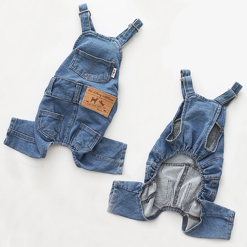 Small Medium Large Dog Jeans Jumpsuit Overall for Dogs, Blue Dog Denim Clothes Costumes Vintage Washed Dog Pants Classic Jacket
