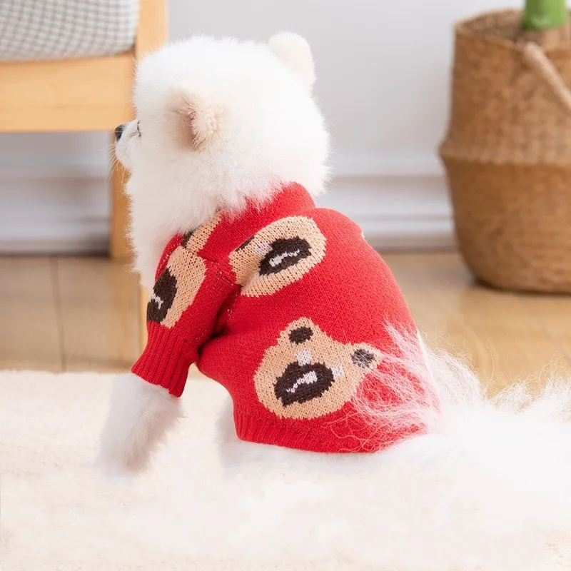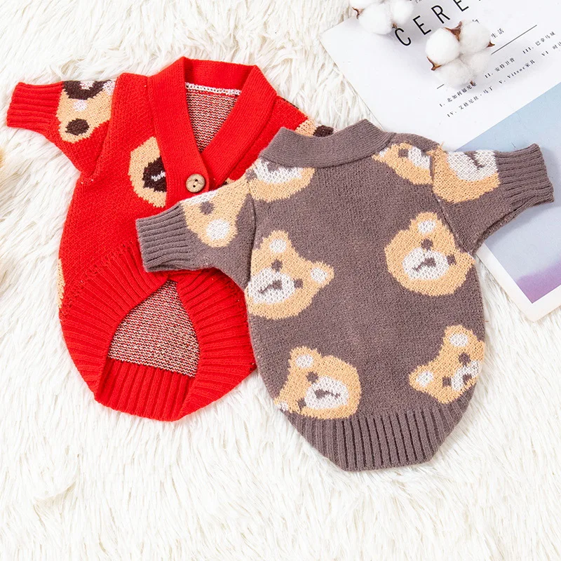 Dog Sweater 2024 Bear Print Cardigan Coat Dog Knitted Sweater Chihuahua French Bulldog Bichon Fashion Dog Clothes Puppy Apparel