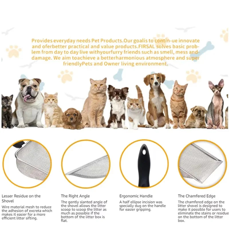 Fine Hole Cat Litter Scoop Pet Products Stainless Steel Scoop For Small Cat Litter Pet Feces Cleaning Filter Scoop