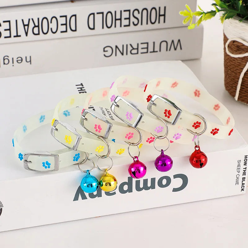 Glow in The Dark Dog Collar with Bell,Self-Lighting Dog Collar Light up Puppy Collar Adjustable Fluorescent Pet Safety Collar