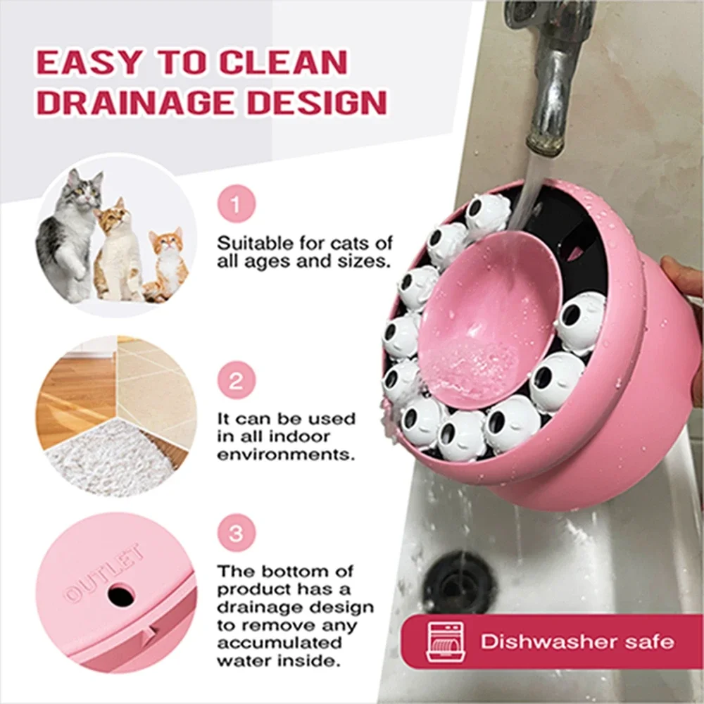 Interactive Cat Slow Feeder Bowl Feed Keep Cat Stomach Healthy Slanted Design Protect Kitty Neck Multifunction Pet Feed Bowl