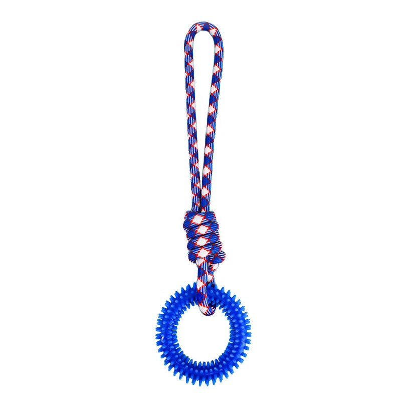 Interactive Training Dog Toys for Small Medium Dogs Rubber Spiked Ring with Rope Chewing Toys Dog Teeth Cleaning Pet Supplies