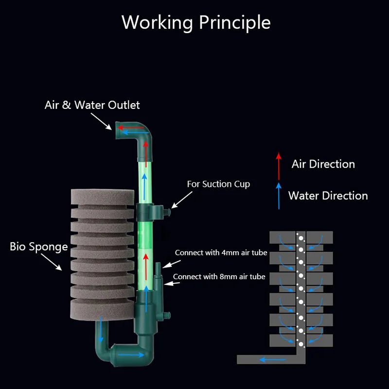 Biochemical sponge filter provides biological filtration to the aquarium, helps to stable water quality.