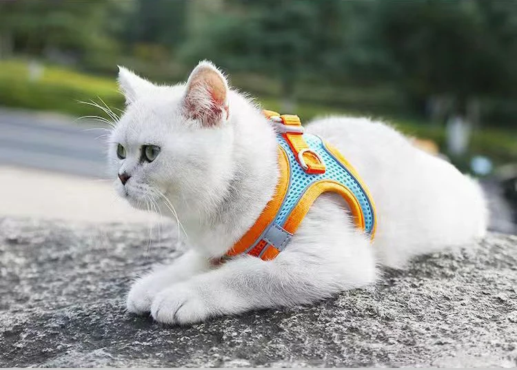 2. Comfortable Outdoor Harness: This kitty harness is made of air-mesh fabric, which is lightweight and breathable, suits for all seasons. Padded edges and soft vest to keep your cat from injuries and provide extra comfort and protection.