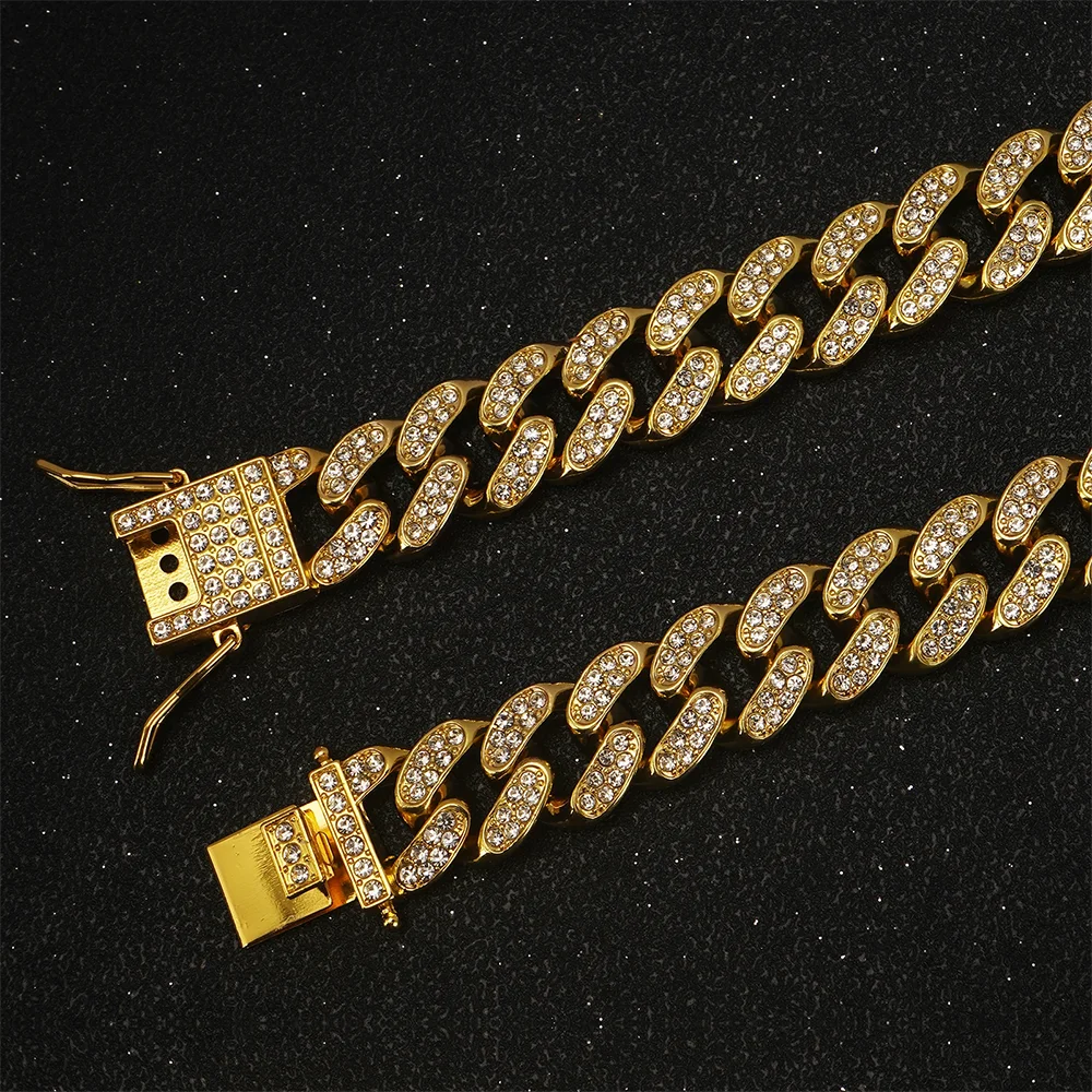 Pet Dog Chain Cuban Collar and Design Safety Buckle Metal Cuban Artificial Diamond Dog Collar Necklace