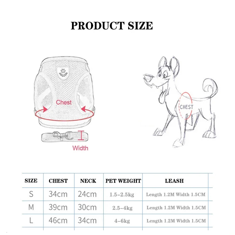Pet Harness Adjustable Vest Walking Traction Rope Set for Dog Collar Breathable Mesh Harness for Small Medium Cat Collar