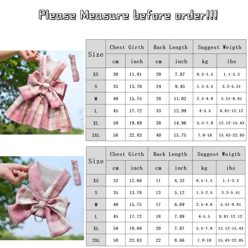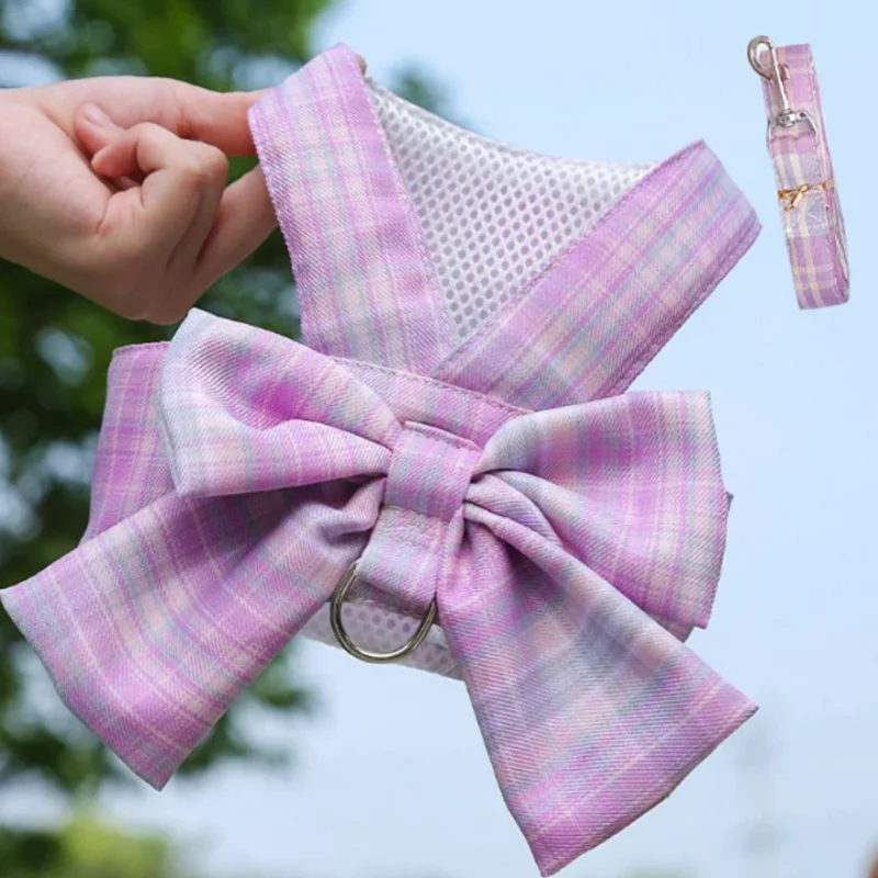 Pet Jk Plaid Dress Dog Harness and Leash Set Bow Skirt Kitten Puppy Vest Luxury Dog Clothes Chihuahua Dog Outfits Bichon Items