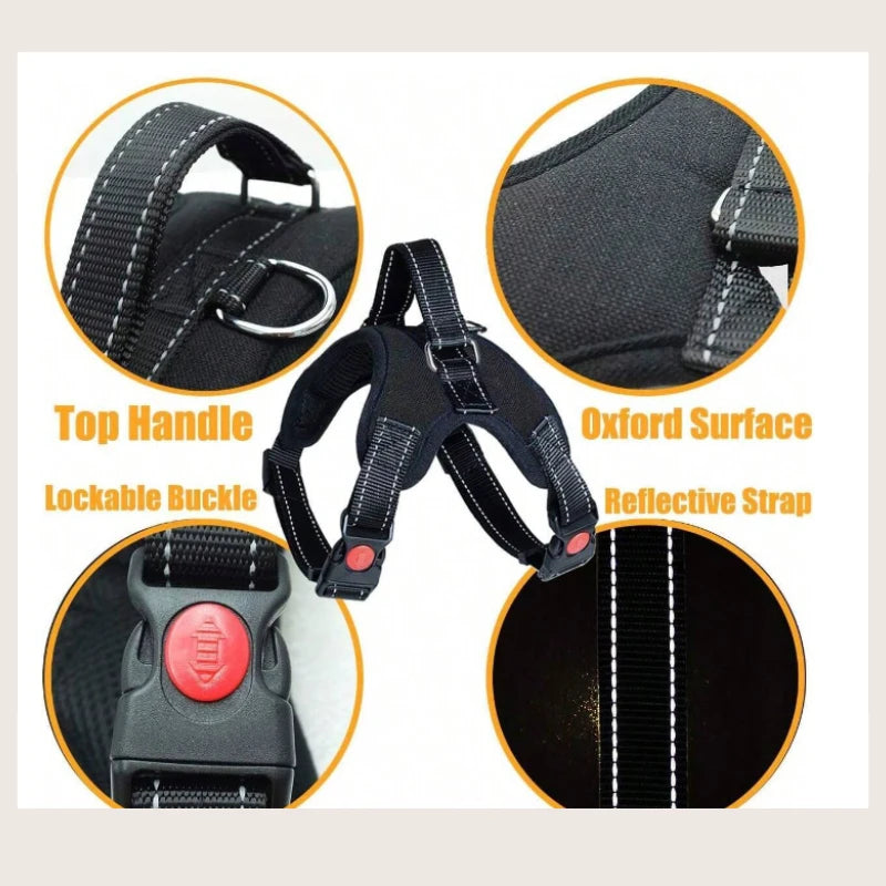 Sturdy nylon handle strap handle design is easy to grip and control cute pets, retractable and adjustable size, explosion-proof pet harness, breathable and comfortable, universal in all seasons. Explosion-proof buckle prevents break-off, and the webbing is reflective. Fit fabric.