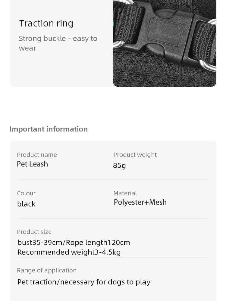 - Soft mesh pet vest harness and nylon leash set for walking escape proof no pull & no choke design.