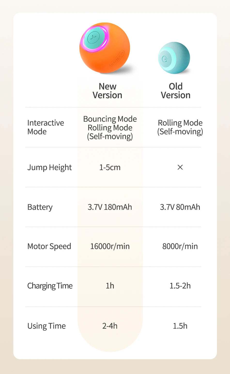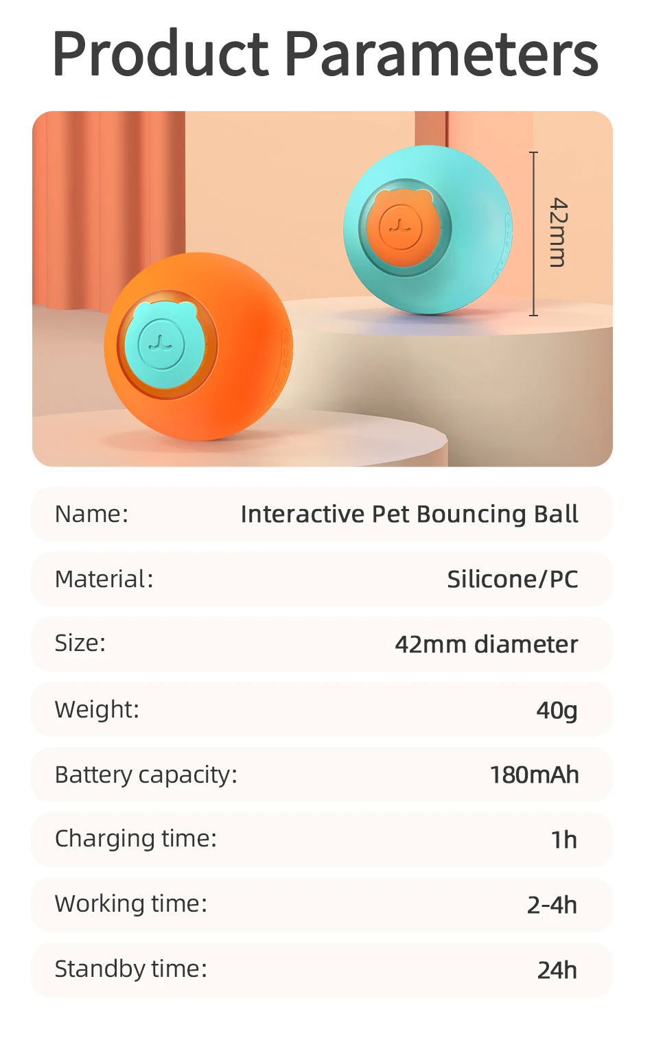 ROJECO Smart Cat Toys Interactive Cat Bouncing Ball Automatic Rolling Ball Training 360° Auto-Rotating Electric Toy For Dog Pet