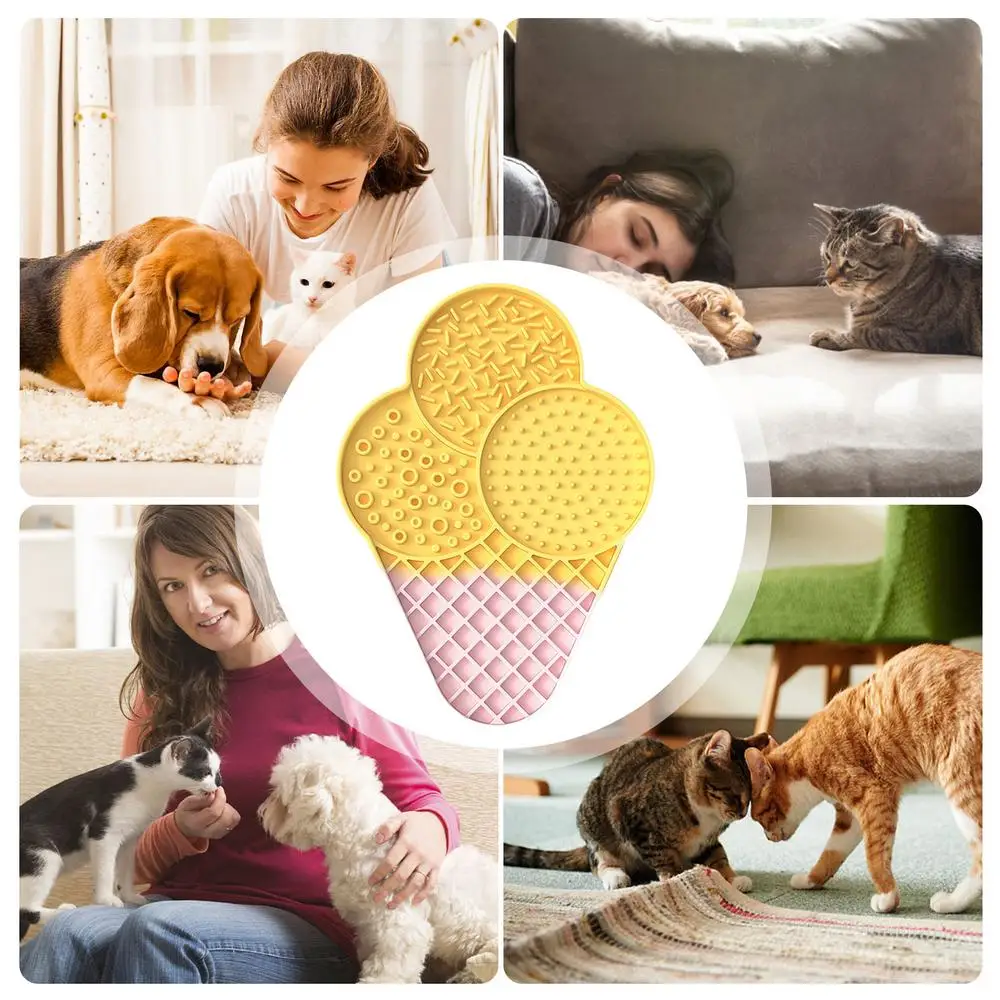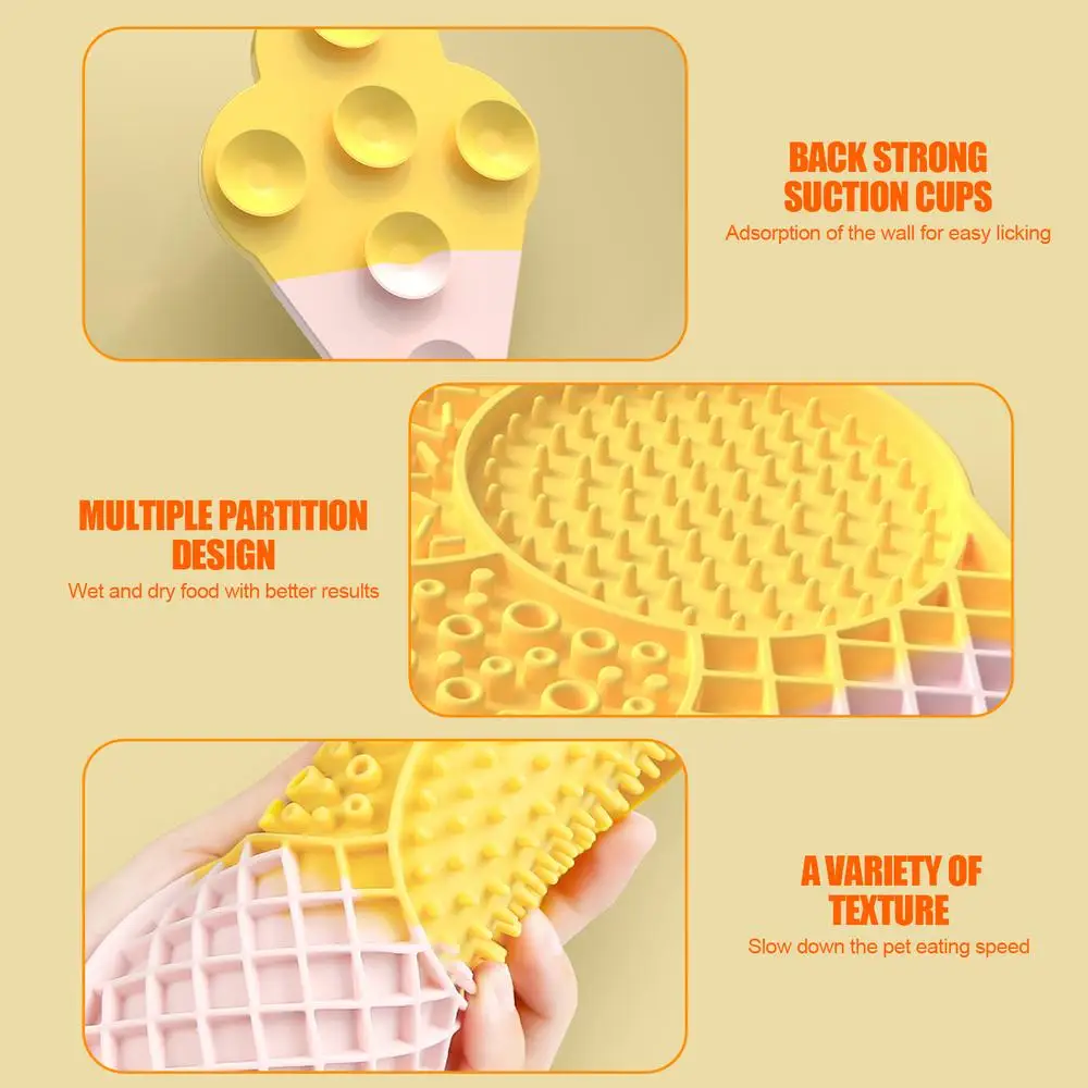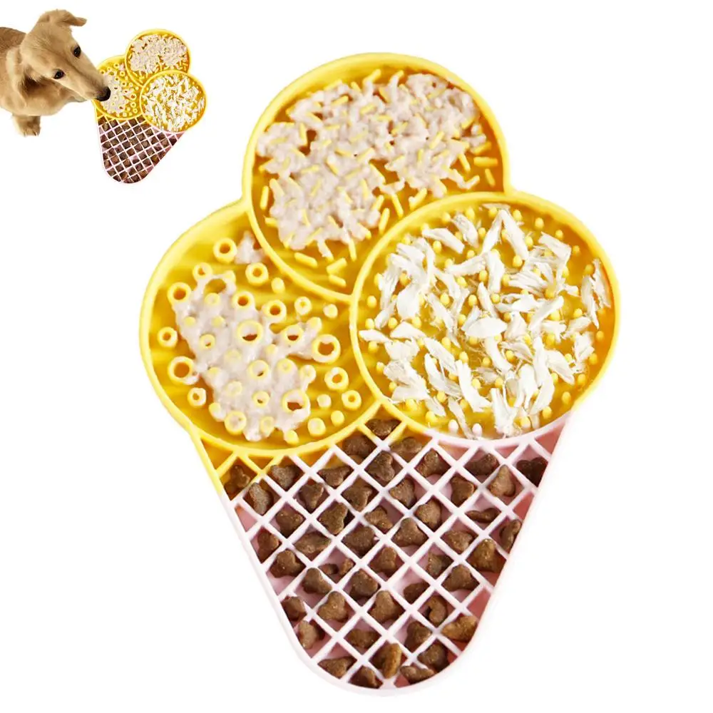 Slow Feeder Dog Bowl Dog Feeding Bowls Silicone Ice Cream Shaped Food Bowl Dog Dishes with Suction Cup Cat Feeder for Healthy