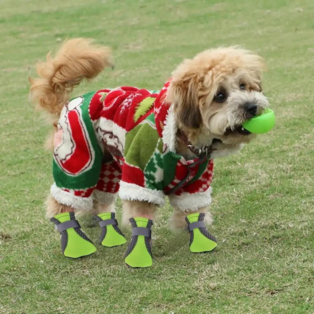 Small Dog Shoes Mesh Hiking Boots Paw Protector 4pcs Breathable Dog Shoes Adjustable Non Slip For Outdoor Running Walking Summer