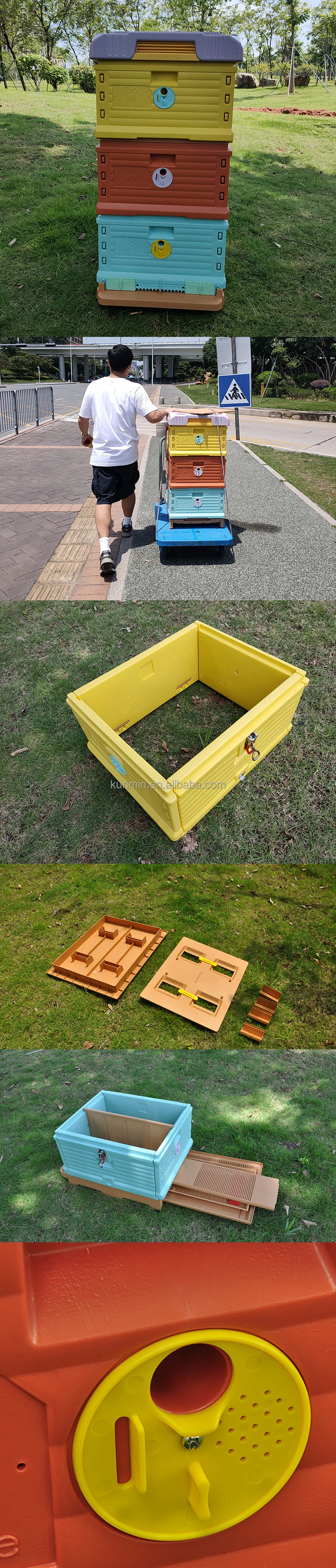 1.The Plastic Thermo Beehive with its universal fully interchangeable design offers a complete mix and match solution for various beekeeping practices and standards. 2.Thermal Insulation The multi-purpose Thermo Hive types were developed taking bee biology, physiology and behaviours together with beekeeper requests and different ecological characteristics into consideration in line with this perspective. 3.The innovative all-round double layer insulation helps keep the colony warm in the winter and cool in the summer.