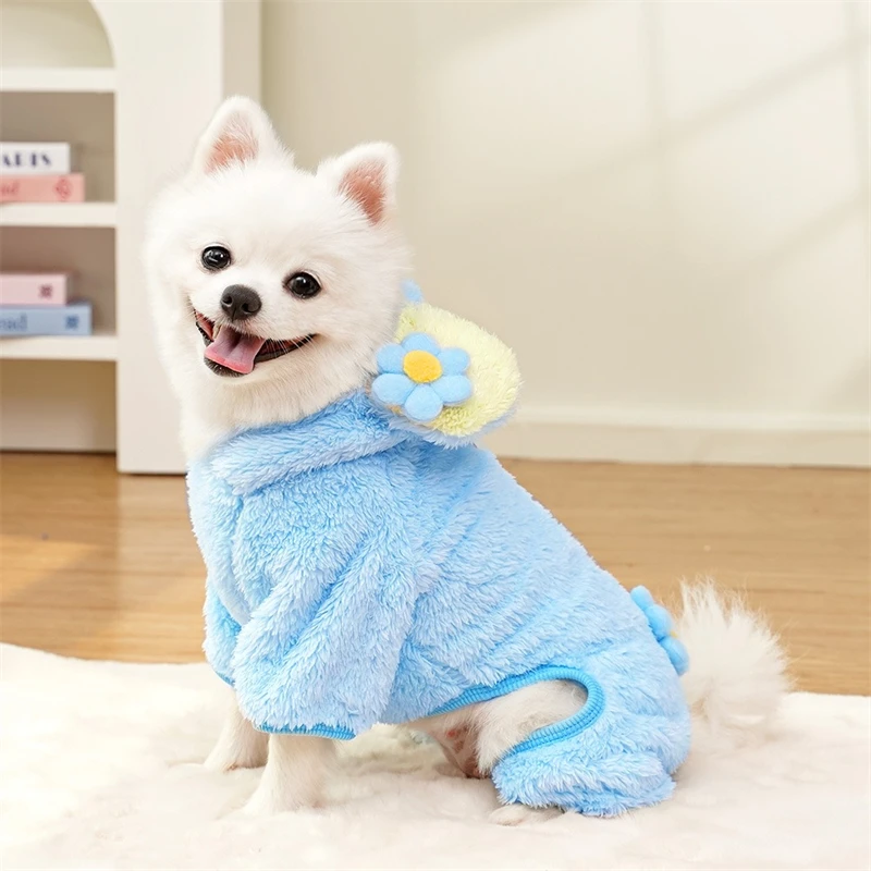 Soft Flannel Pet Dog Clothes Light Blue Solid Flower Winter Overalls for Cats New Year Cosplay Chihuahua Coat Kitten Sweatshirts