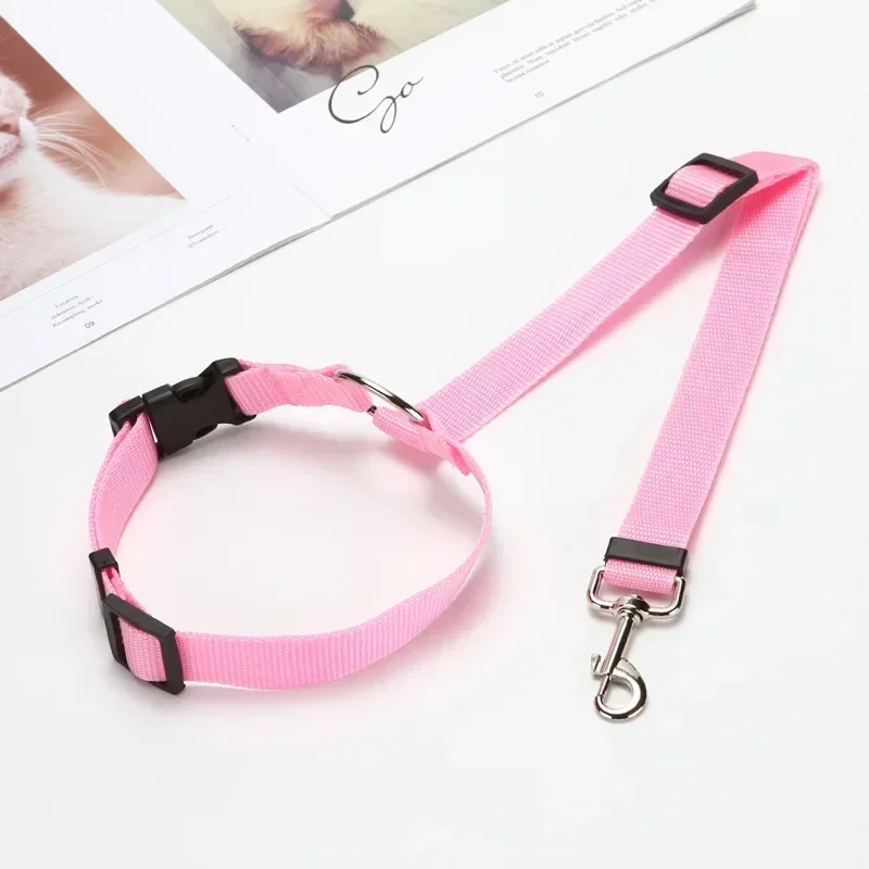 Solid Color Two-in-one Pet Car Seat Belt Nylon Lead Leash Backseat Safety Belt Adjustable Dogs Harness Collar Pet Accessories