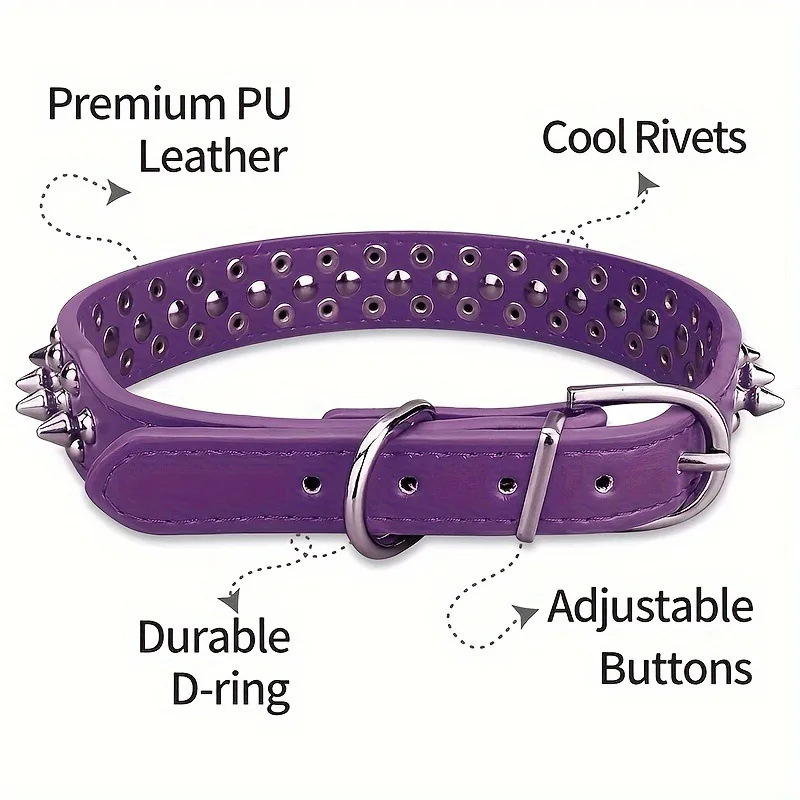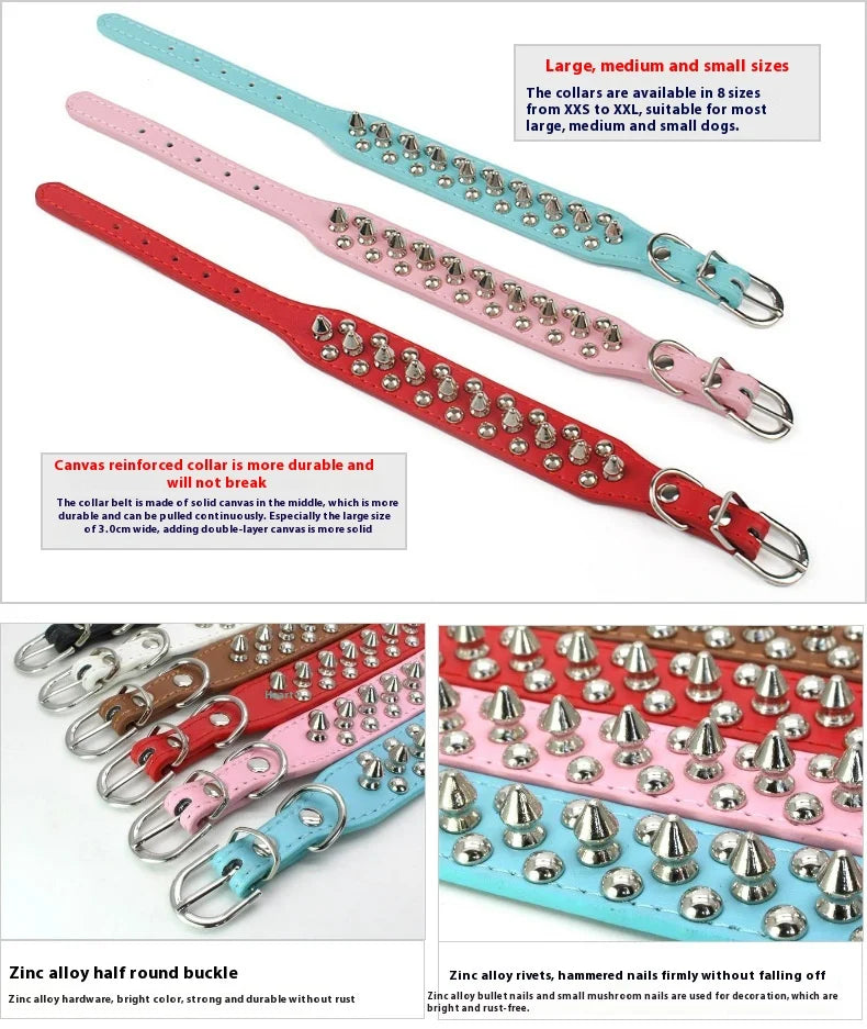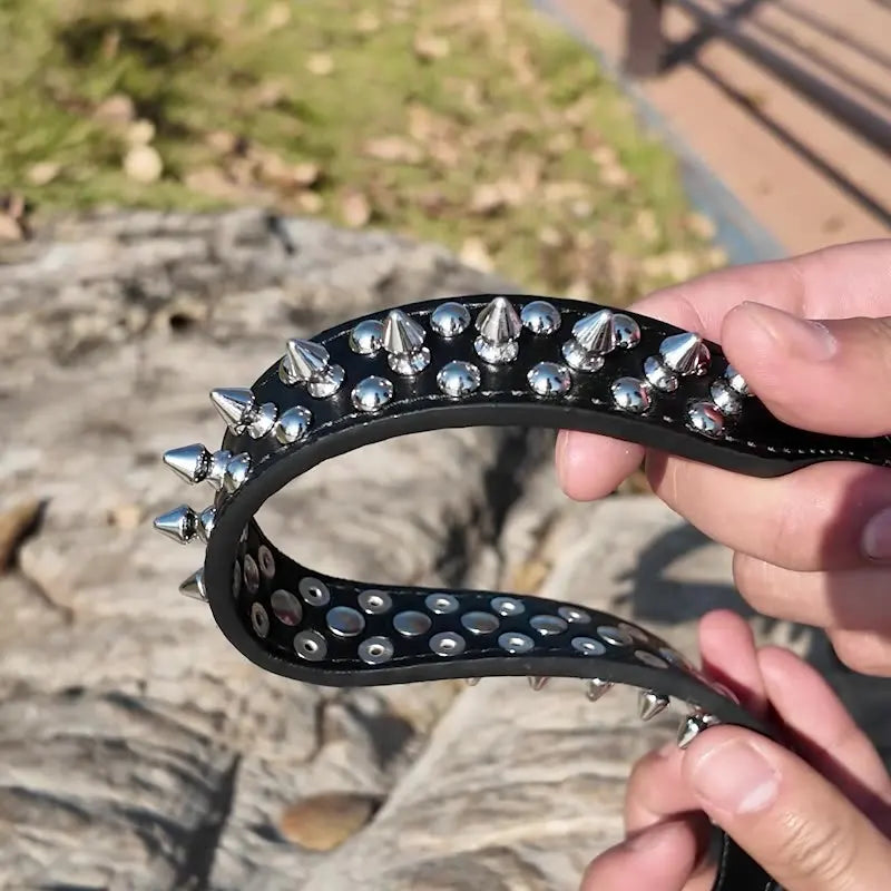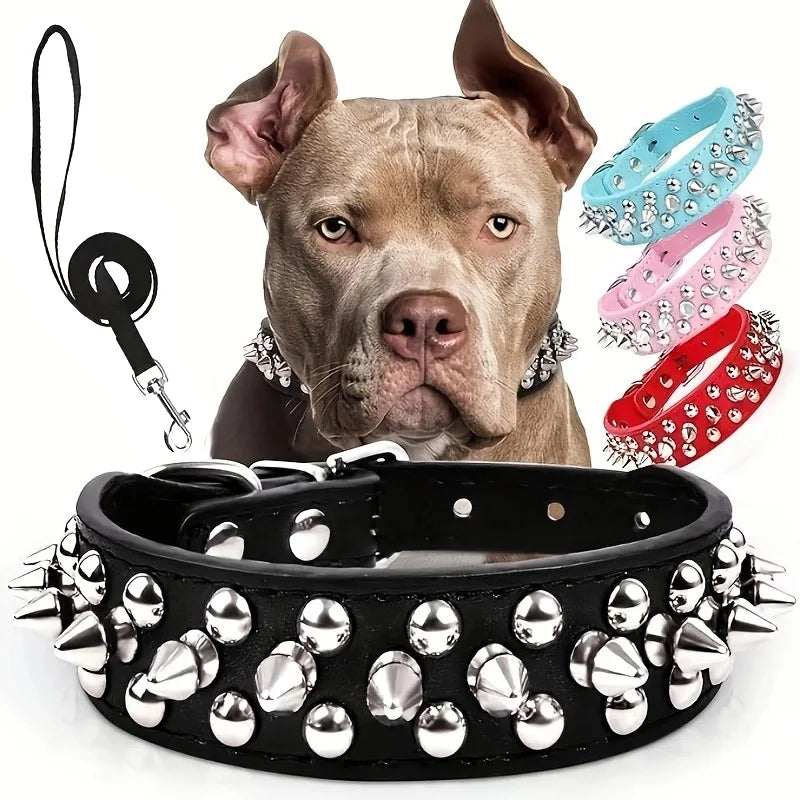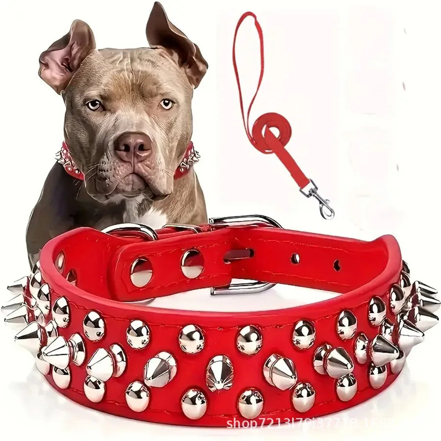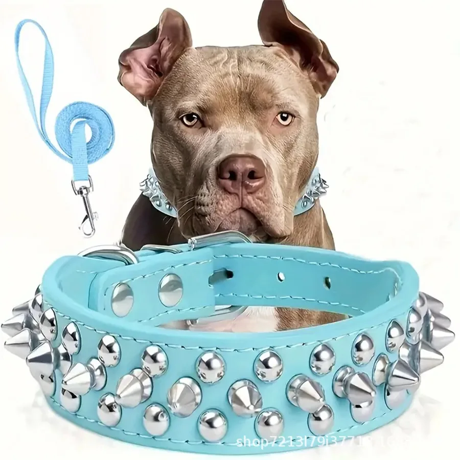 Spiked Dog Collar And Leash Set, Rivet Leather Dog Collar Adjustable Dog Collar For Outdoor Walking