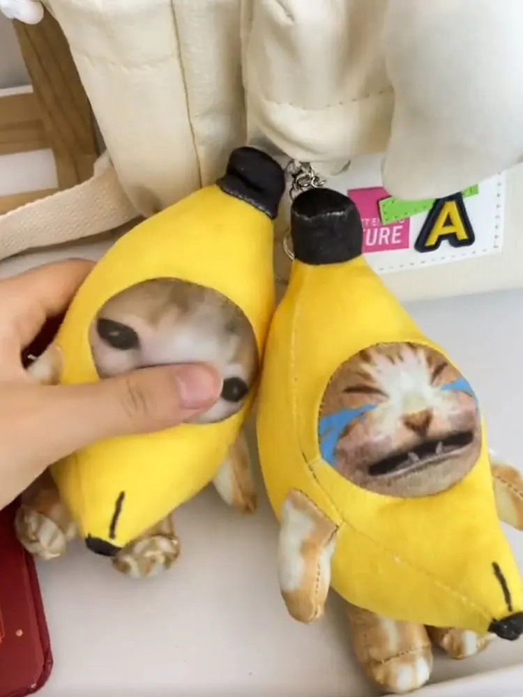 Squeaky funny banana happy cat charm sounding plush toys keychain banana cat pendant dolls