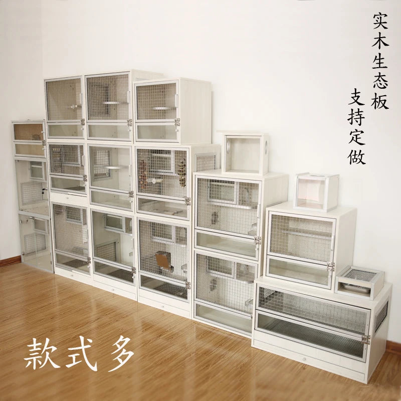 Squirrel Dragon Cat Dog Cat Iron Cage Wooden Cabinet Cage Ecological Board Ice Nest Stainless Steel Net Villa Non-acrylic Cage