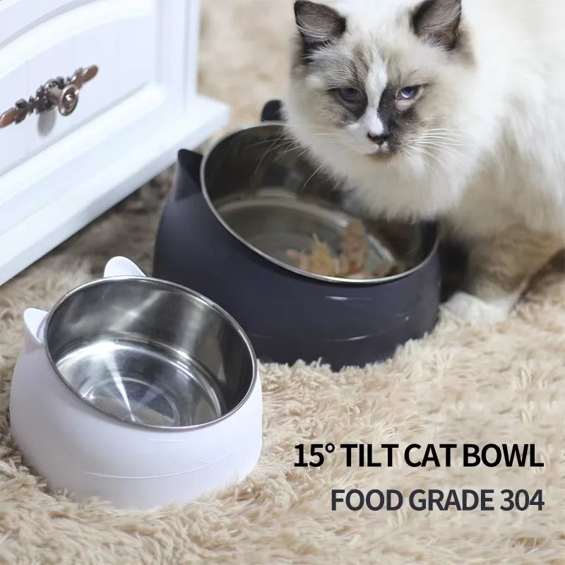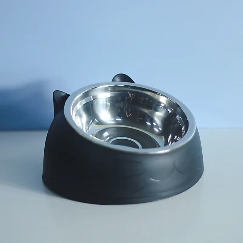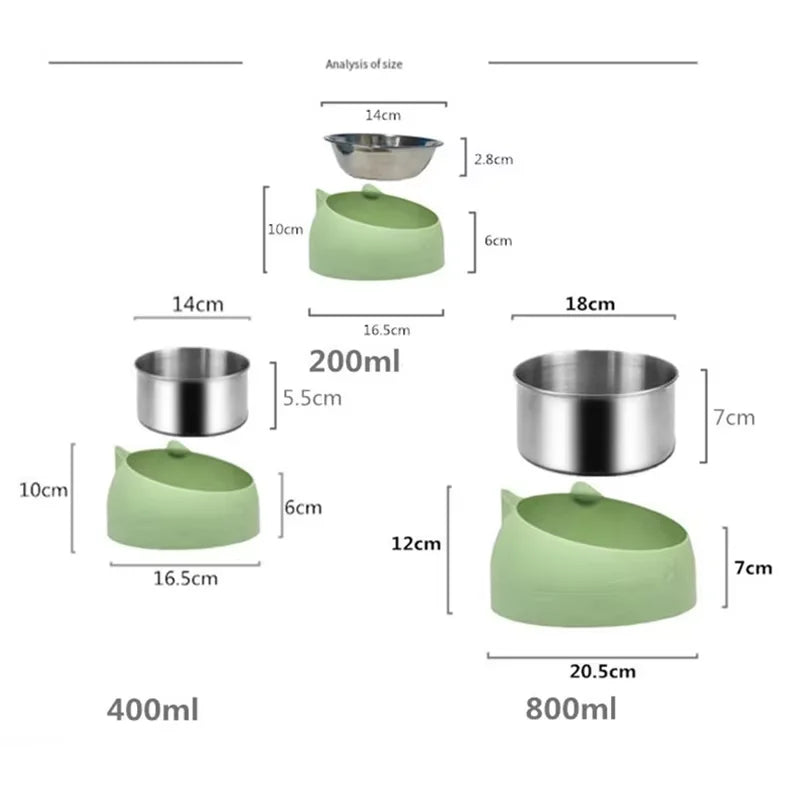 Stainless Steel Cat Bowl Double Bowl To Protect Cervical Vertebra Cat Bowl Oblique Explosion Pet Food Basin Cat Supplies