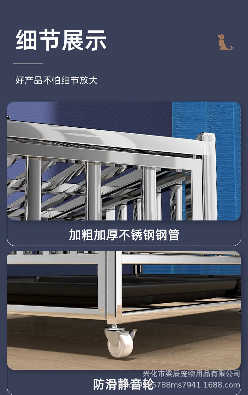 Stainless steel dog cage with partition mother and child cage square tube double cage large pet golden retriever ken