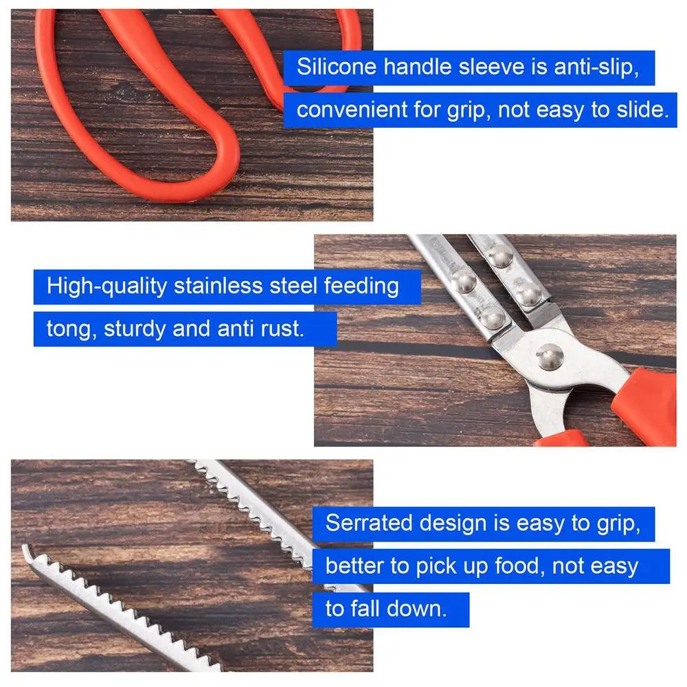4.Secure Handling: Crafted with a serrating design, these tongs ensure a secure hold, enhancing stability and precision during feeding trainings, minimizing weak and unstable grips
