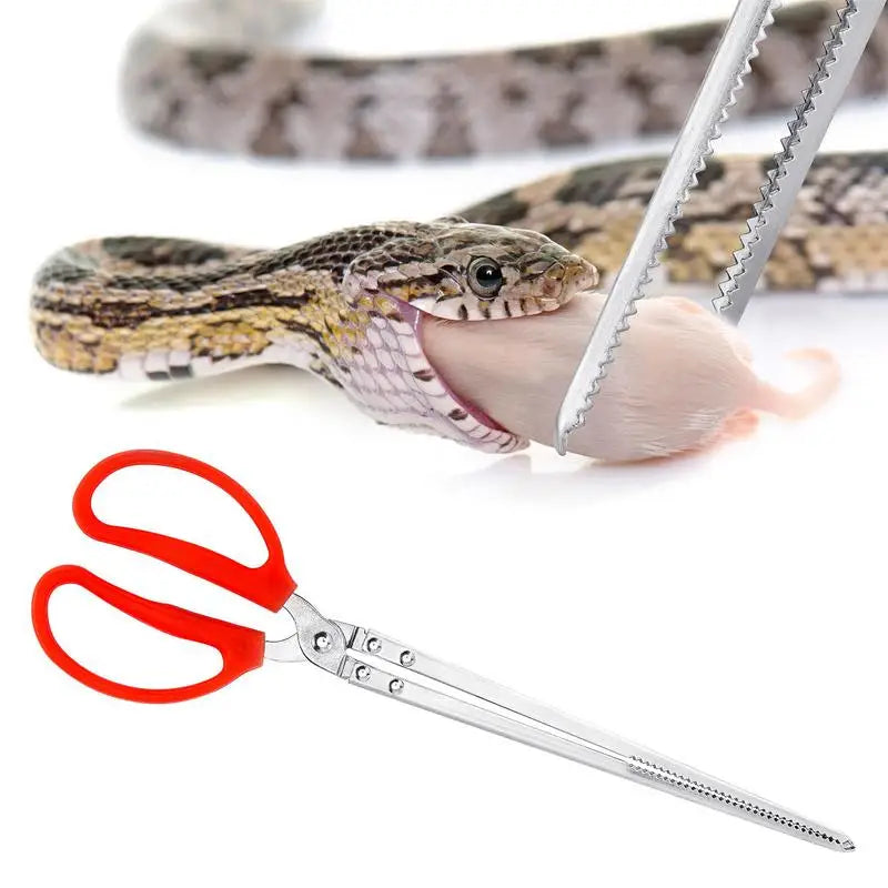 Introducing our sturdy and handsome stainless steel reptile feeding tool! Featuring a silicone sleeve on the handle, it's perfect for feeding corn lizards, snakes, ball pythons, and more. With a total length of about 15 inches, you'll have no trouble minimizing weak and unstable grips during feeding.