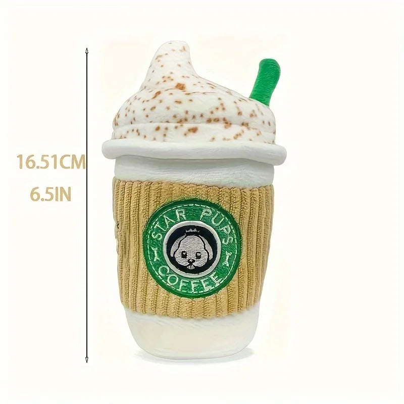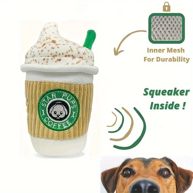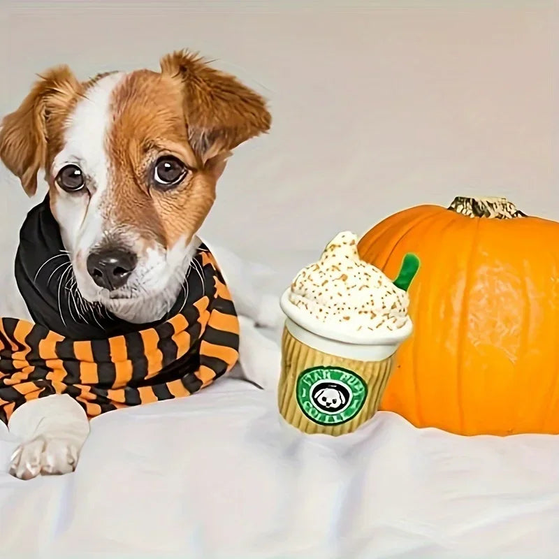 Star Pups Coffee Plush Squeaky Toy for Dogs - Cartoon Patterned Fabric, Medium Breed Recommended, Interactive Pumpkin Spice