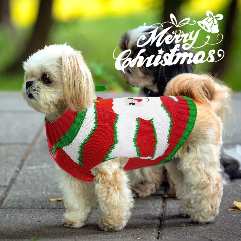 Striped Dog Sweater Dress Winter Knitted Pet Dog Skirt Puppy Coat Dog Warm Clothes Labrador Jacket Costume for Small Large Dogs