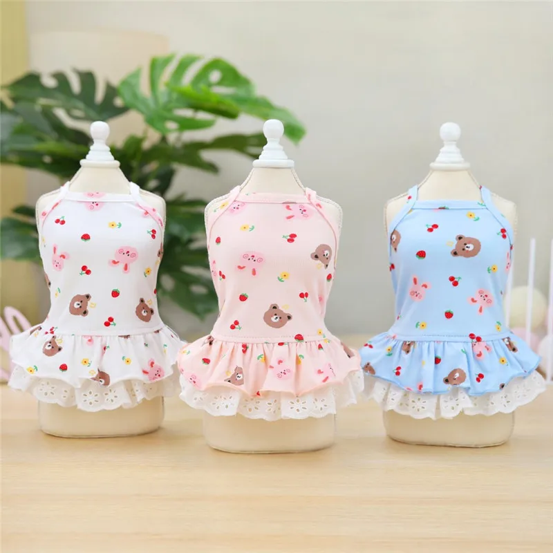 Summer Cotton Cat Dress Skirt Cute Pineapple Cherry Print Pet Clothes Dresses for Cats Sphynx Dog kedi elbisesi ropa para gatos