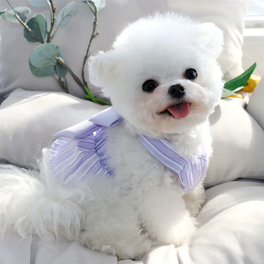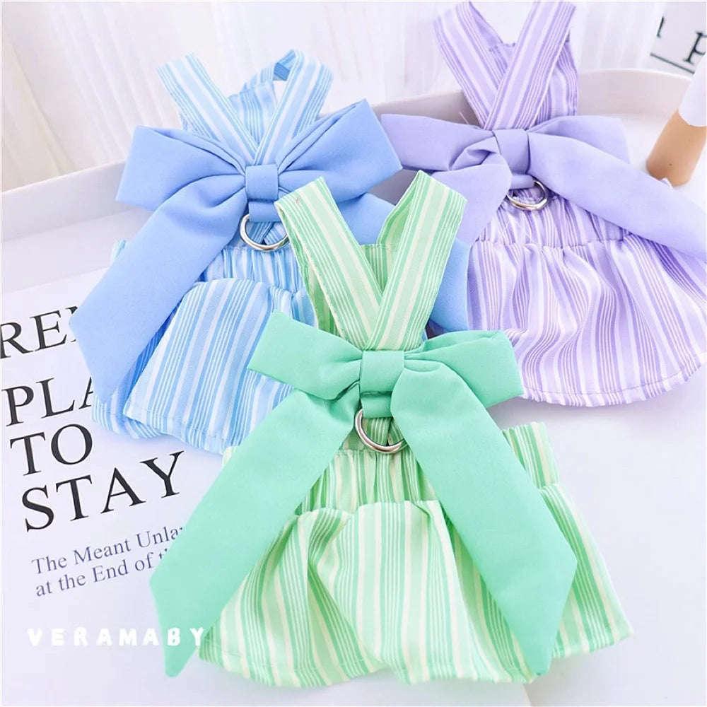 Summer Puppy Dog Skirt Dress with Buckle Sweet Stripe Pet Clothes for Small Dogs Pinscher Maltese mascotas Dresses disfraz perro