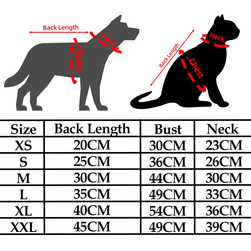 XS:Back Length20CM/7.87" Bust30CM/11.81"