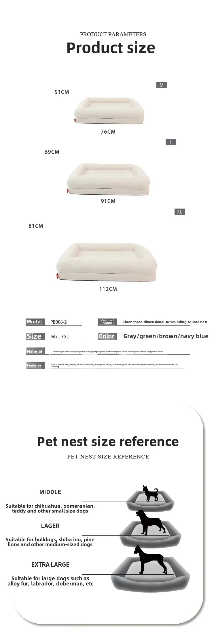Surround Quadrangle Dog Kennel All-season High Thickened Memory Foam Removable Waterproof Spacious Solid Wear-resistant