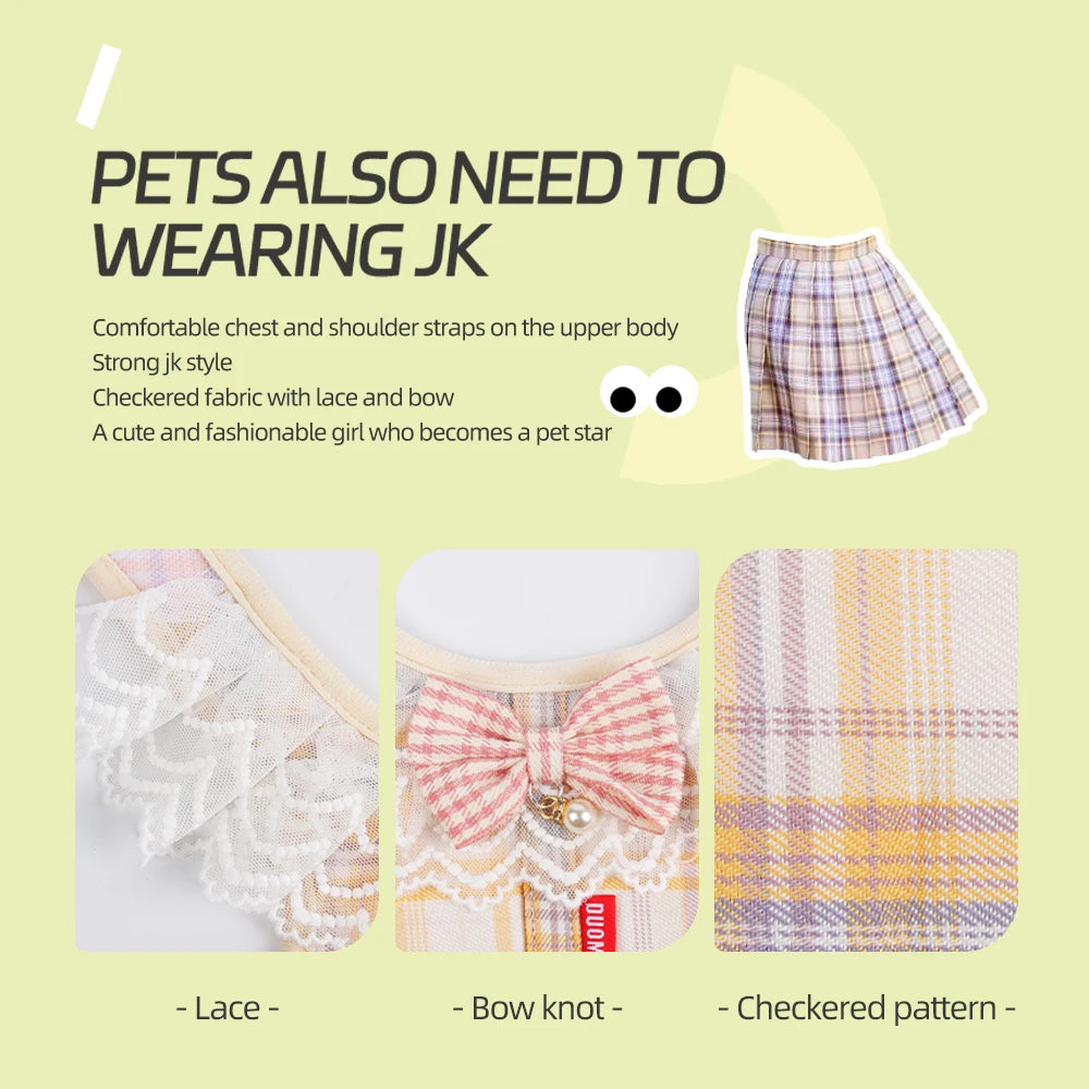 With a sweet and charming design, this harness set is perfect for small dogs, including Schnauzers and Poodles. The bow adds a touch of cuteness, making this set perfect for a pet with a sweet personality. Its college-style plaid design is a popular trend, making it a great fashion statement for your pet.