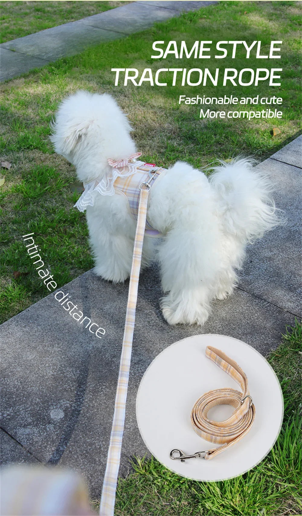 Sweet Plaid Puppy Dog Harness with Bow Walking Pet Harnesses and Leash Set for Small Dogs Schnauzer Poodle mascotas Accessories