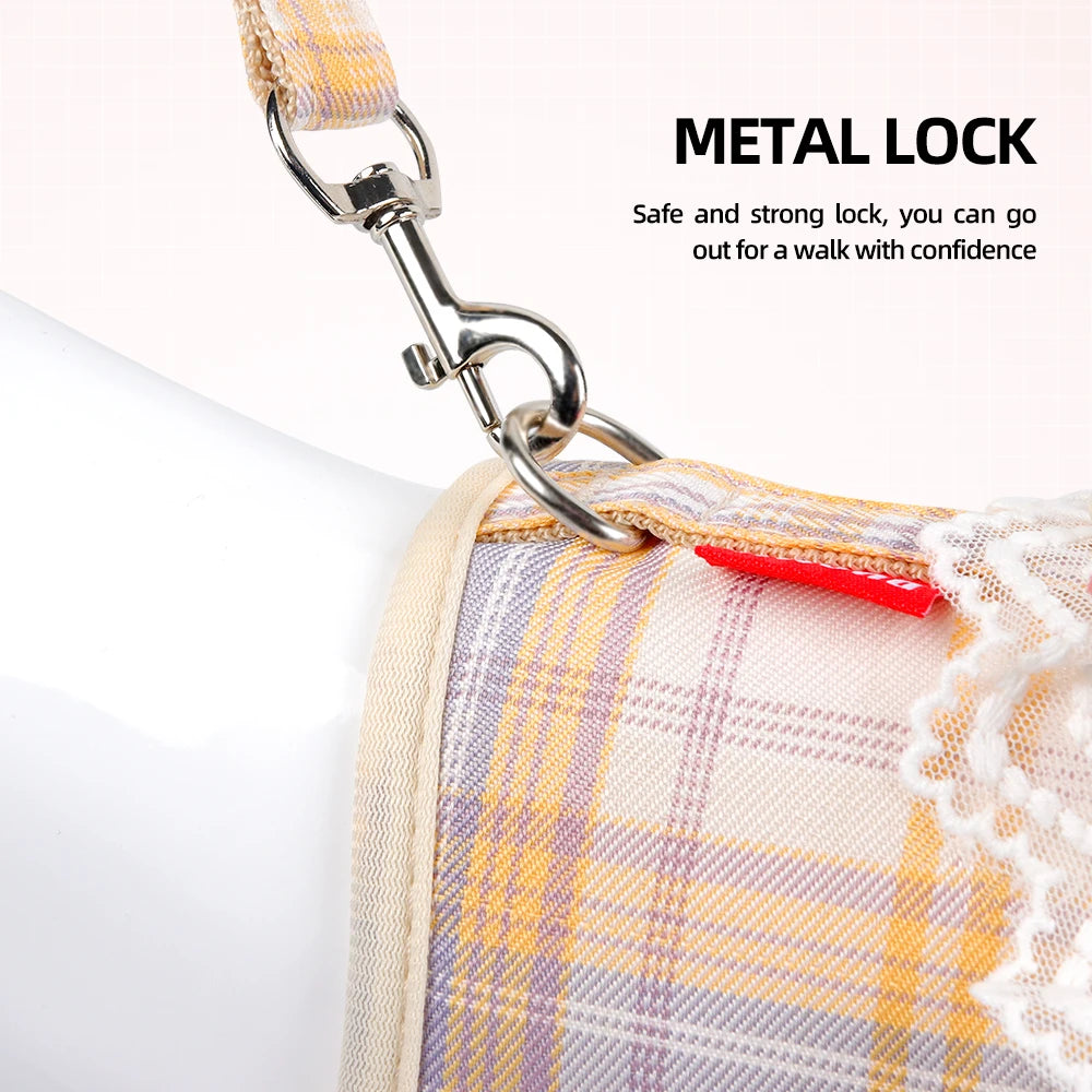 Introducing our Sweet Plaid Puppy Dog Harness with Bow Walking Pet Harnesses and Leash Set for Small Dogs, the perfect accessory for your furry friend! Made for style and comfort, this harness and leash set comes in a charming plaid design that will make your pet stand out. The high-quality material ensures durability and long-lasting use. The adjustable harness ensures a perfect fit for your dog, while the leash provides firm control during walks and playtime.