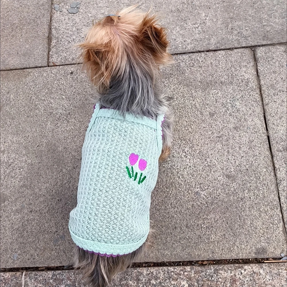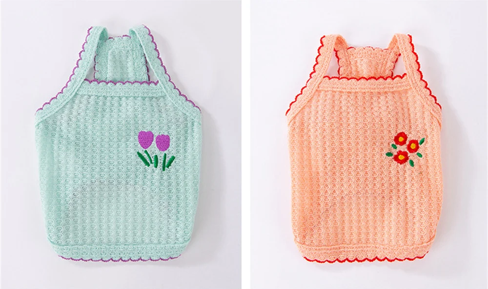 Sweet Puppy Dog Camisole Vest for Small Dogs Summer Pet Clothes Pomeranian Maltese Shirts mascotas Flower Embroidered Clothing