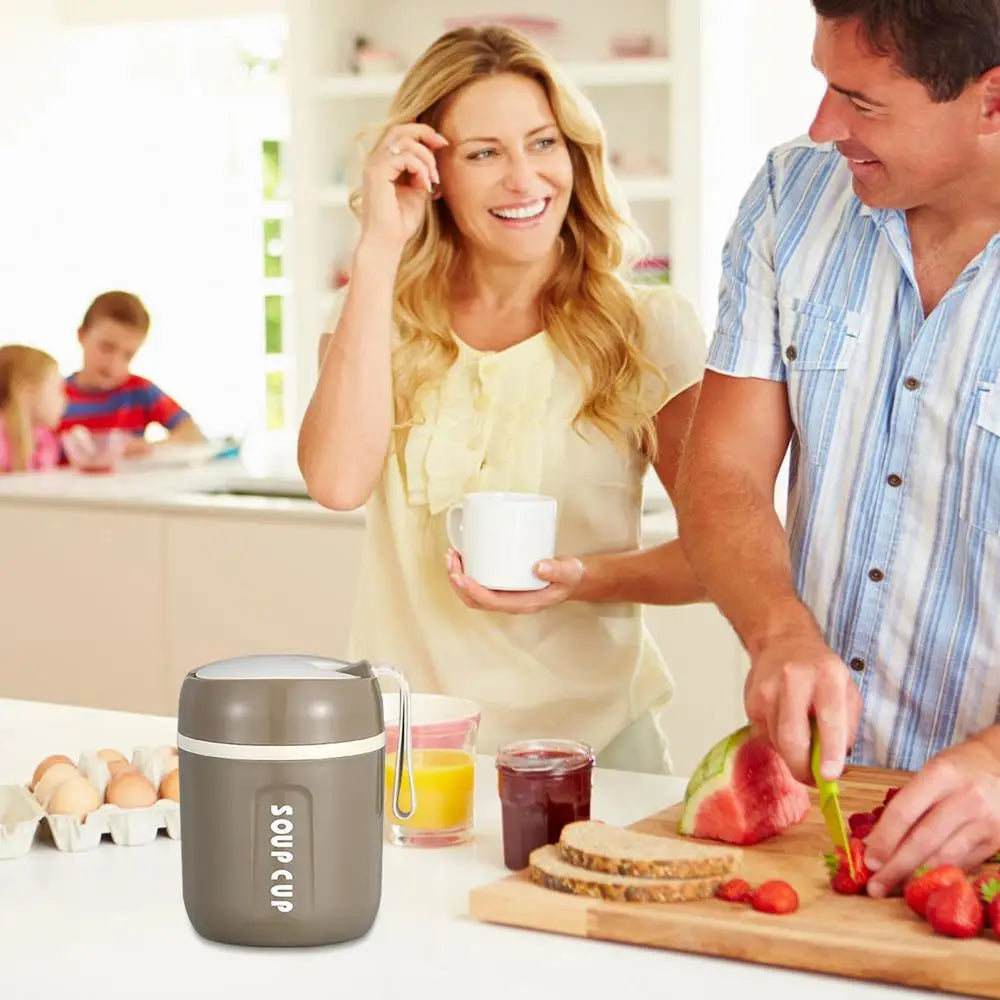 This thermal food jar is perfect for working, traveling, camping and other outdoor activities. Its multifunctional design includes a wide mouth and handle, making it easy to store and organize. This jar is safe and strong, ensuring your food stays hot or cold for hours.