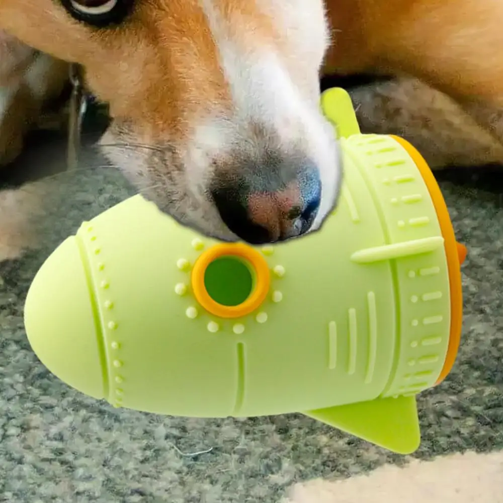 2.Interactive Playtime: Engaged your pet with a rocket-shaped toy that rewards movement with treats, ensuring endless fun and a tasty incentive as the toy wobbles and dispenses food.