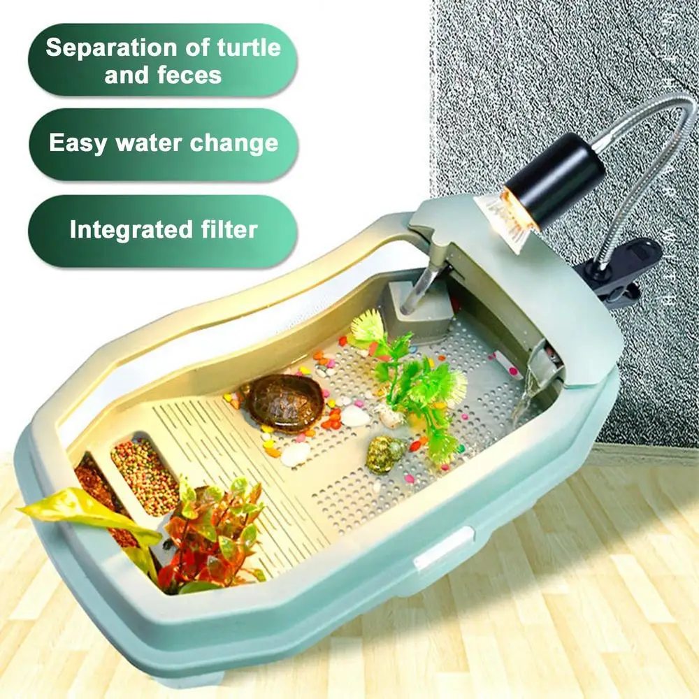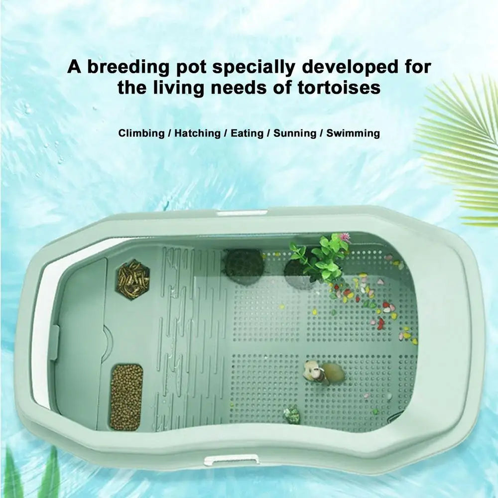 Turtle Tank Aquarium Baby Turtle Habitat With Lid Pet Turtle Habitat Detachable Double Layers Turtle Tank Anti-Slip Tortoise