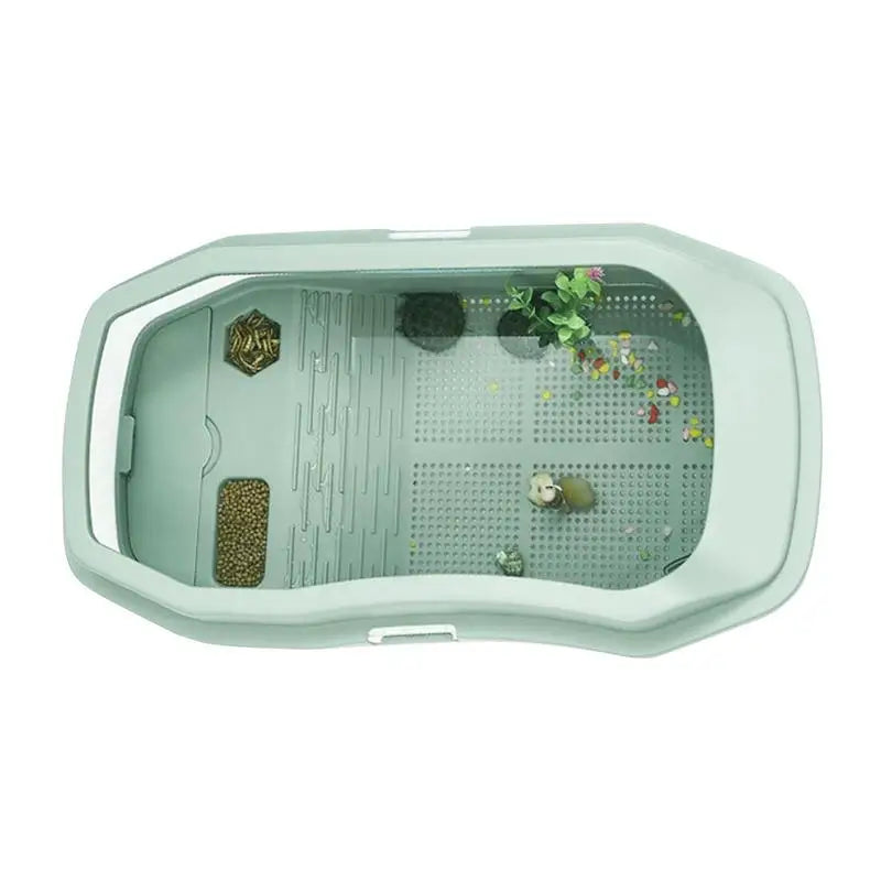 Give your turtle a spacious and comfortable home with this turtle tank aquarium. It has a moderate height, a hollow hole on the upper layer, and a terrace hatch that make turtle climbing effortless. It also features a double feeding trough for easy feeding and cleaning.
