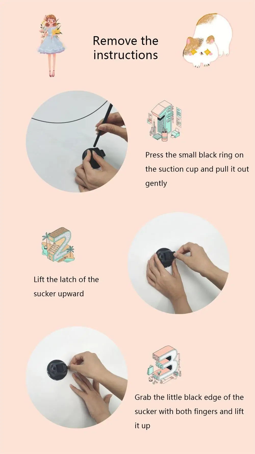 3. The base of the powerful suction cup can be removed, the strong suction force is not easy to fall off, and the new shape