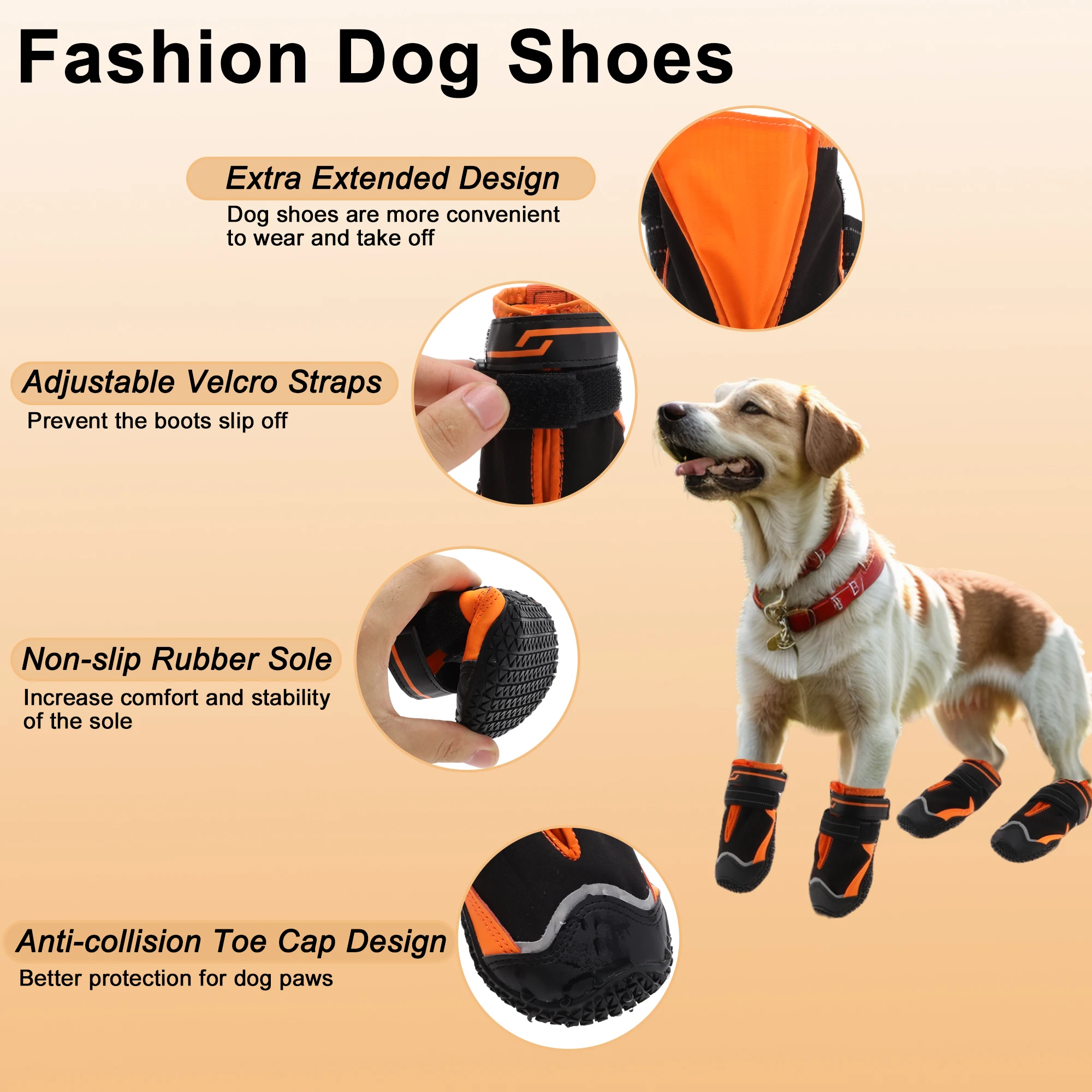 UXCELL 4pcs Casual Dog Shoes Waterproof Anti-Slip Dog Shoes Dog Boots Paw Protectors Outdoor Walking Protector Pets Shoes